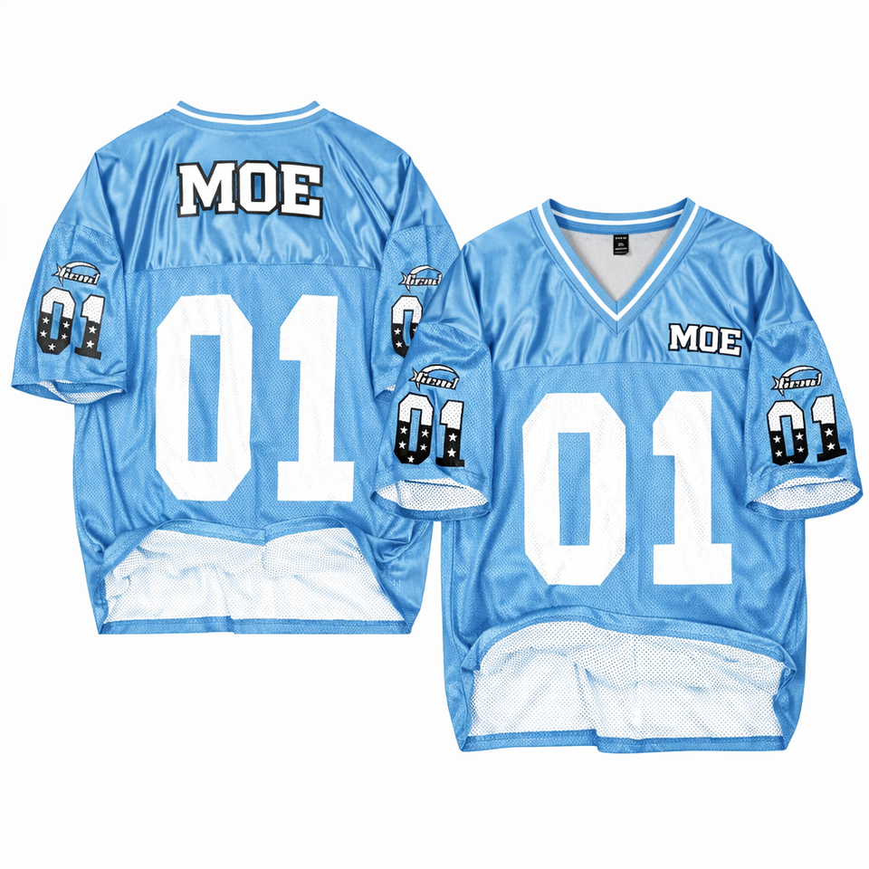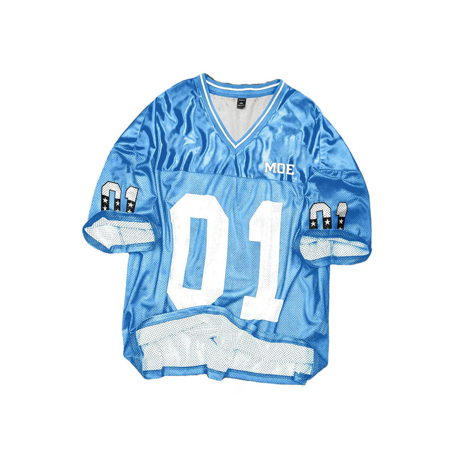 Maillot de football américain léger en maille polyester, col en V, respirant, personnalisable avec logo et numéro, production en gros OEM