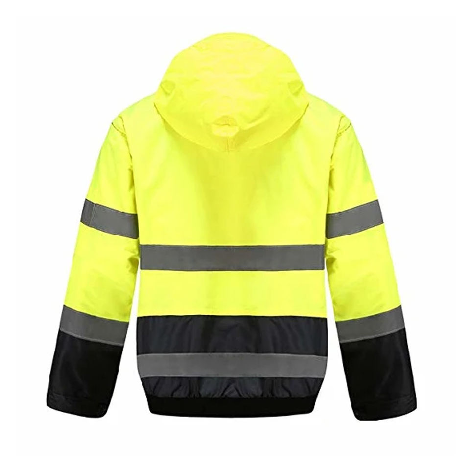 Veste de travail de sécurité en polyester léger Jaune fluorescent Bande réfléchissante Haute visibilité Classe 2 Imperméable Coupe-vent Vêtement de travail