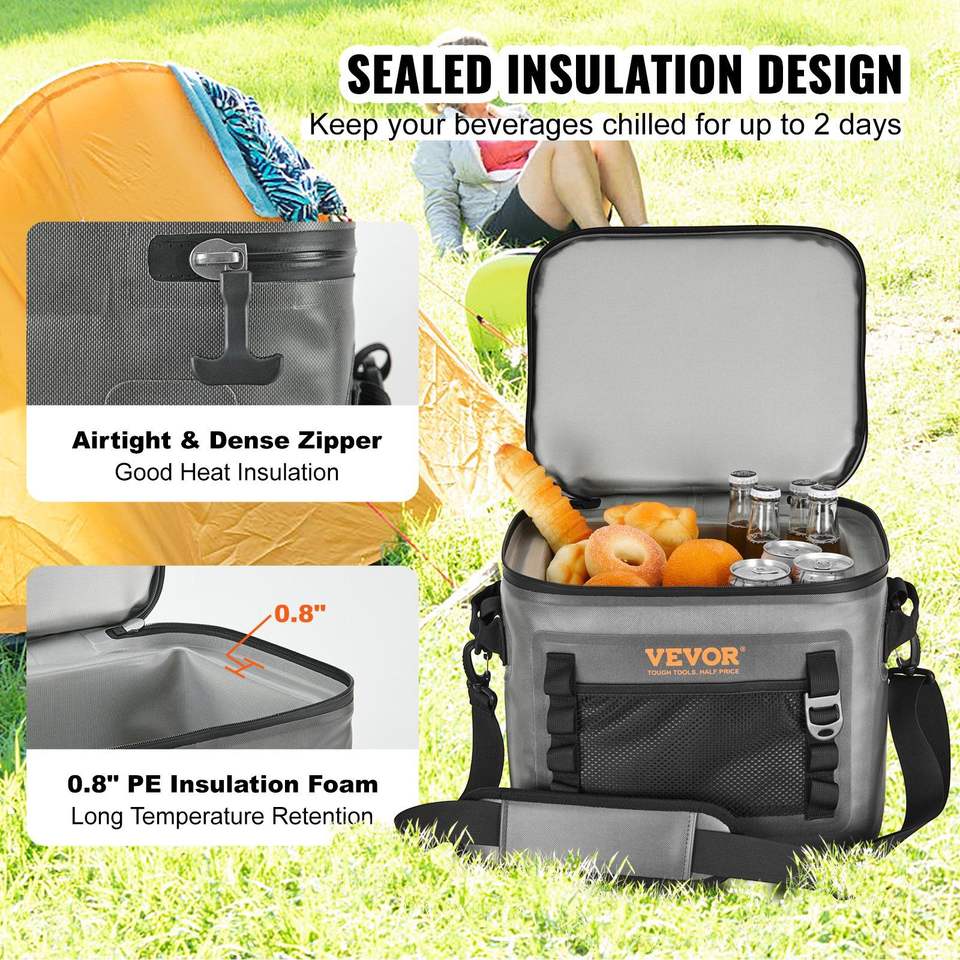 Sac isotherme souple et léger pour 24 canettes, étanche avec fermeture éclair anti-fuite pour le stockage des boissons