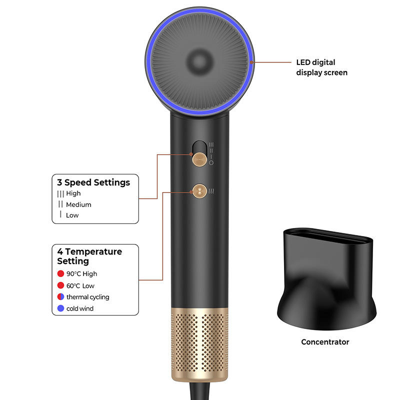 Sèche-cheveux portable léger au design compact, facile à transporter et à ranger, idéal pour les voyages, les déplacements professionnels et l'usage quotidien