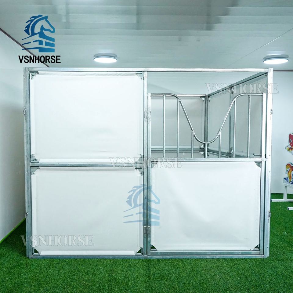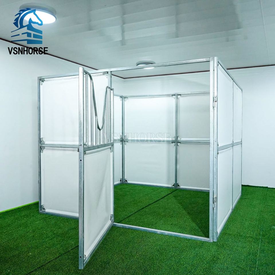 Écurie de cheval portable légère avec panneaux en HDPE résistants aux intempéries, structure en acier et transport facile