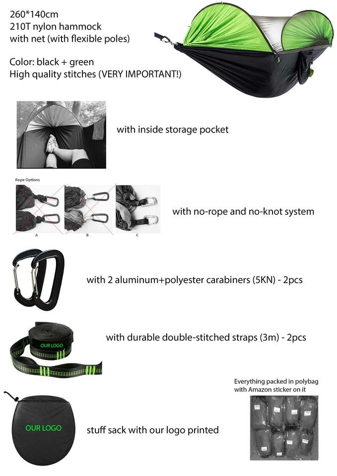 Product Name:Portable Lightweight Hammock Camping Hammock with Mosquito Net