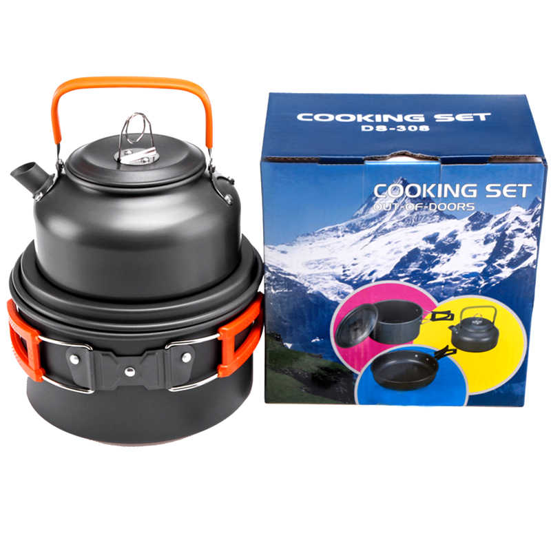 Pots légers poêle à frire théière Kit sac en maille conception Portable voyage Camping pique-nique ensemble d'ustensiles de cuisine antiadhésifs