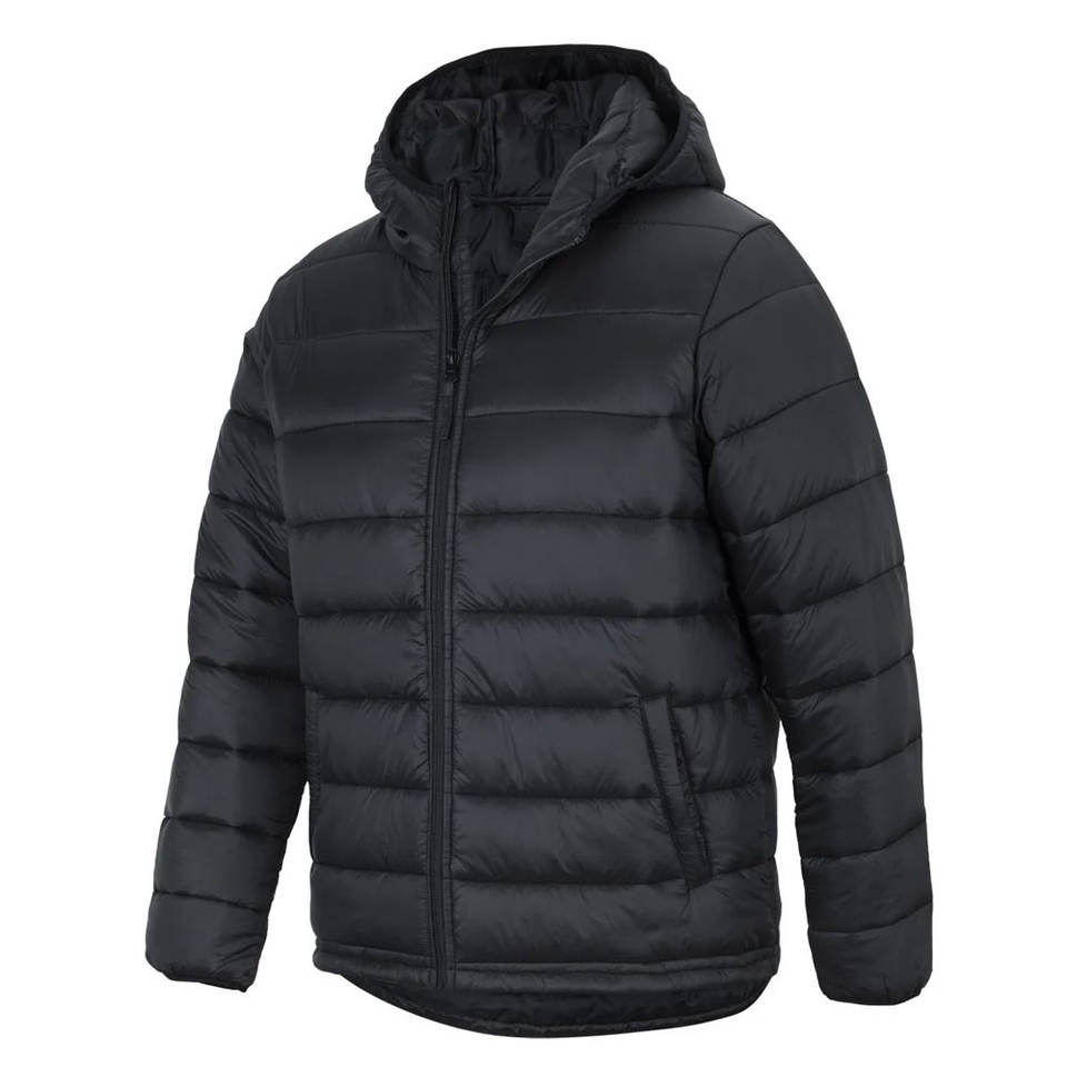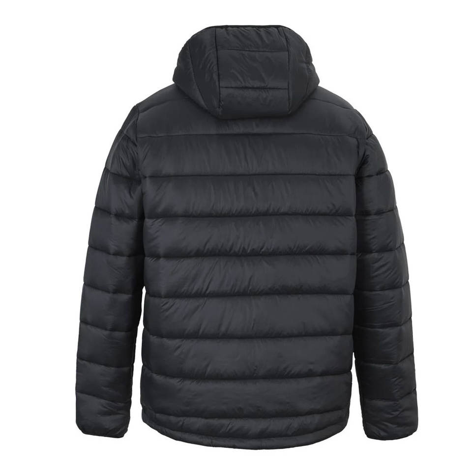 Veste matelassée légère avec logo personnalisé, vente en gros, veste chaude légère noire à capuche, veste d'hiver rembourrée en coton pour hommes
