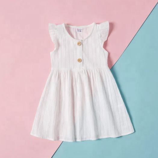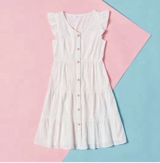 Robe mi-longue légère en pur coton doux pour mère-fille assortie en blanc vif pour la saison estivale coupe décontractée pour les enfants