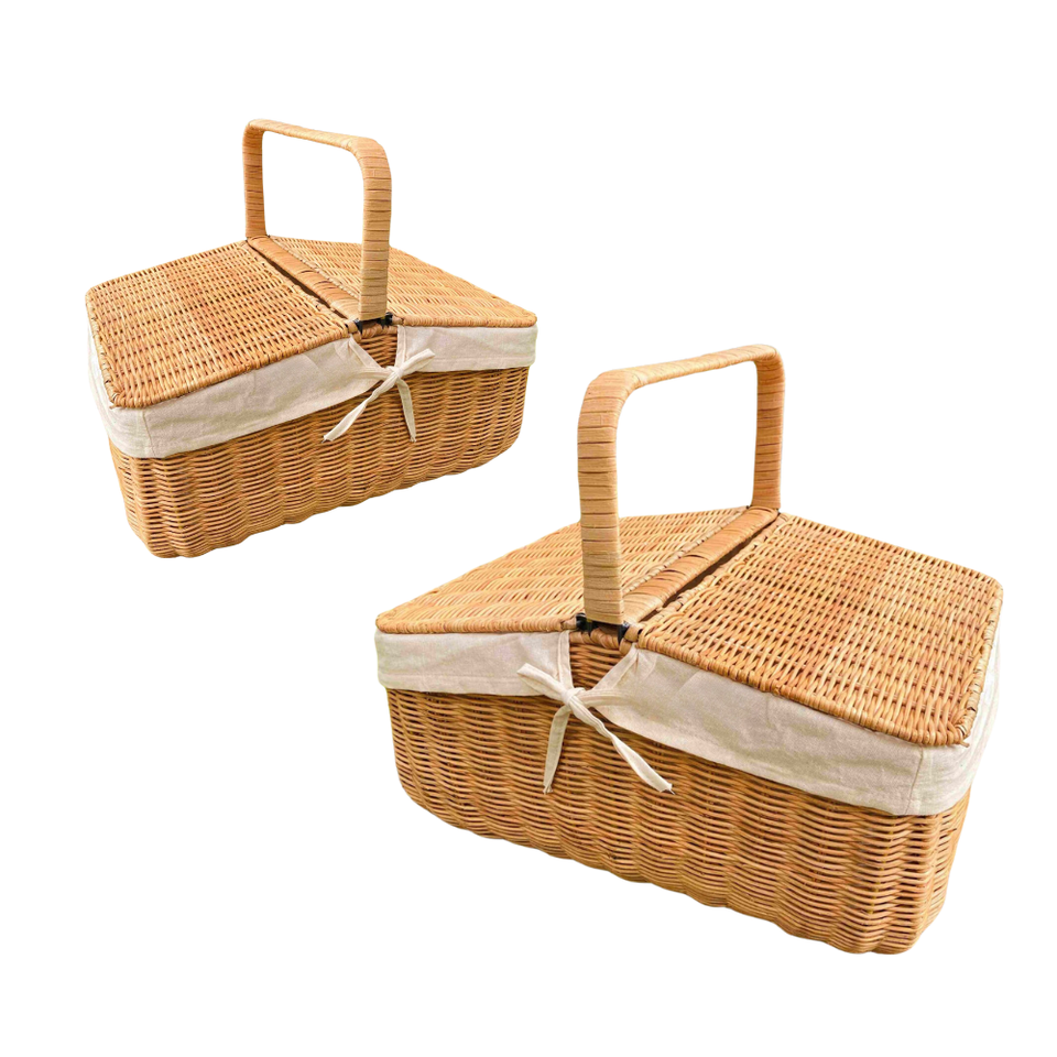 PANIER EN ROTIN léger PANIER PIQUE-NIQUE avec couvercle du Vietnam Grand panier de récolte en osier Design vintage pour le plaisir en famille en plein air
