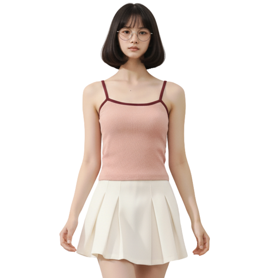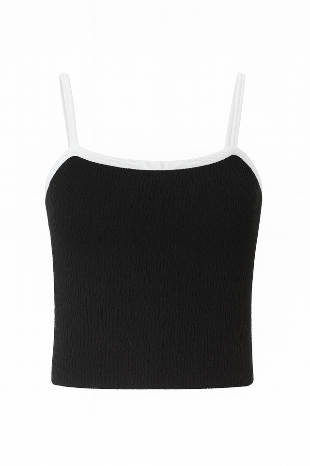 Ensemble deux pièces pour femme en tricot côtelé léger, bretelles contrastées, de haute qualité, extensible, confortable, 100% coton