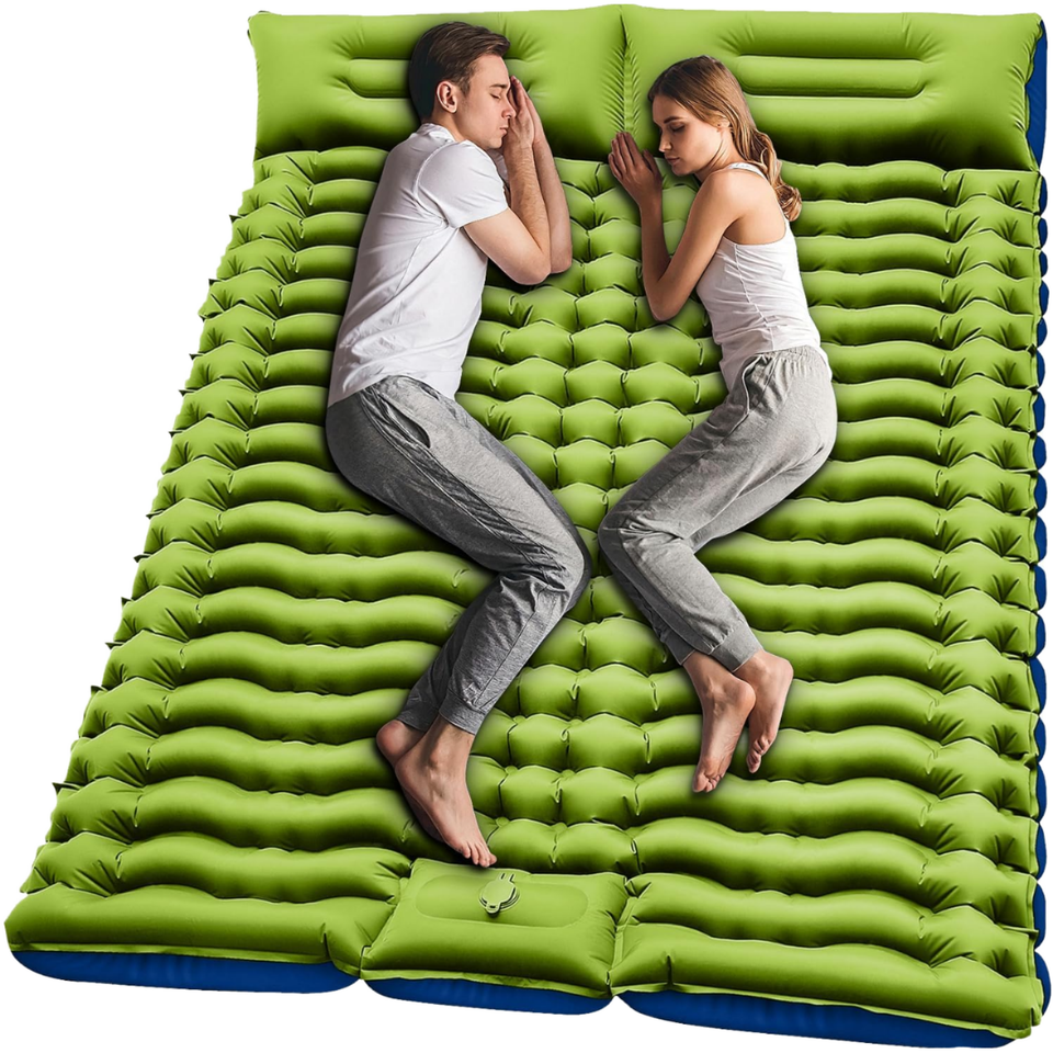 Matelas pneumatique auto-gonflant léger avec oreiller intégré, logo personnalisé, pliable, pour pique-nique, camping, randonnée, pour 2 personnes