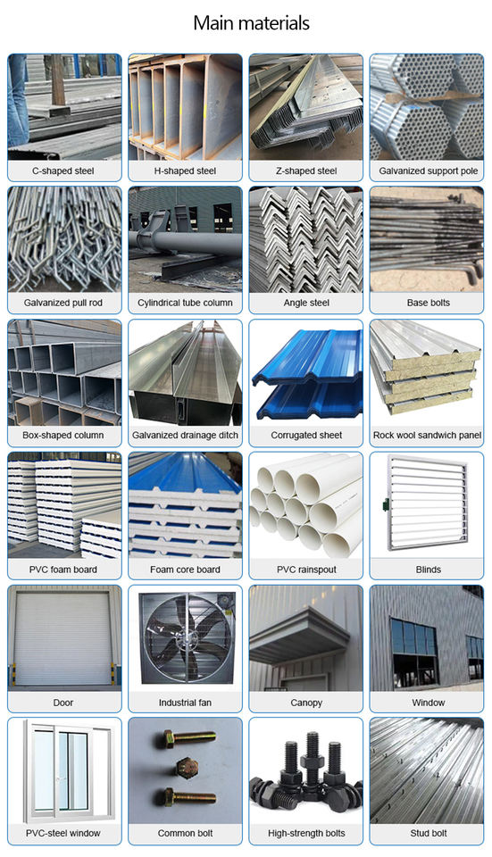 Kits de construction en acier léger pour l'assemblage facile d'entrepôts préfabriqués, de garages, de hangars et d'installations industrielles