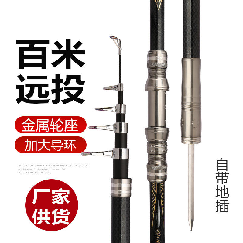 Canne à pêche légère et rigide de 6 m avec porte-moulinet métallique, canne à longue portée pour la pêche en eau salée avec insert de sol