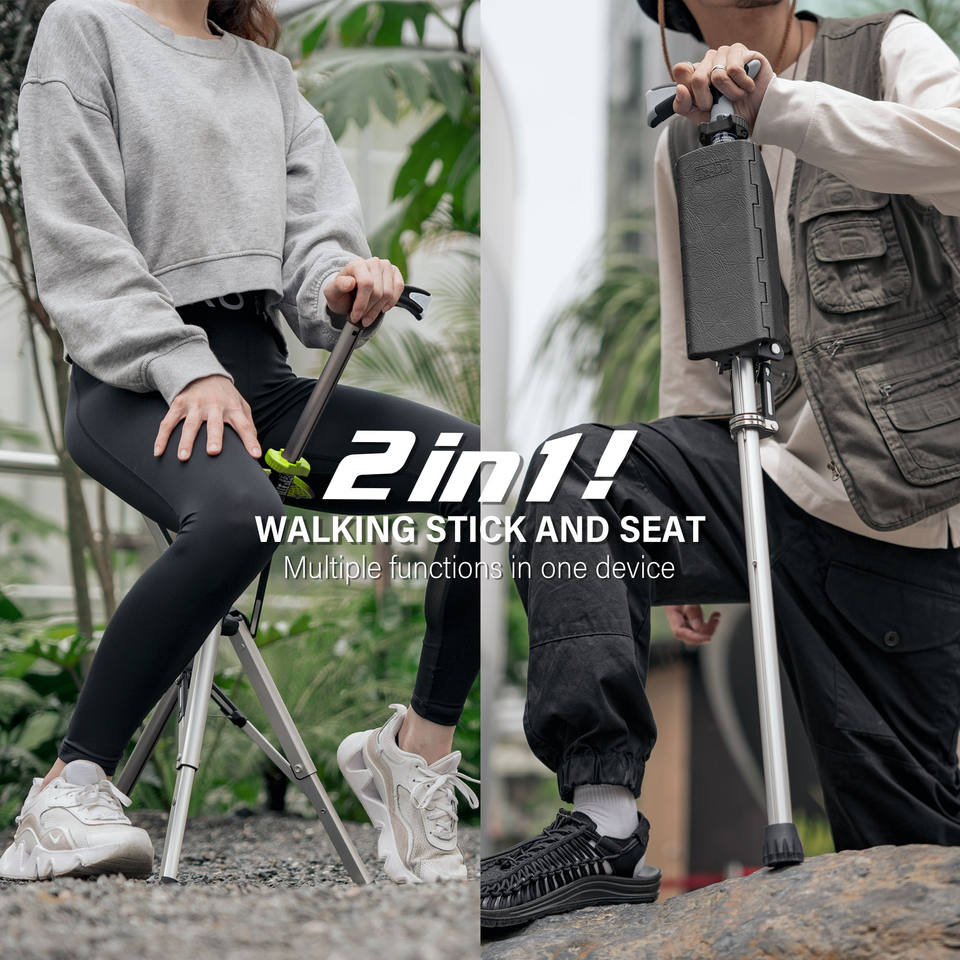 Tabouret pliant portable léger ta-da bâton de marche béquille chaise canne noir 82cm avec siège pour le camping