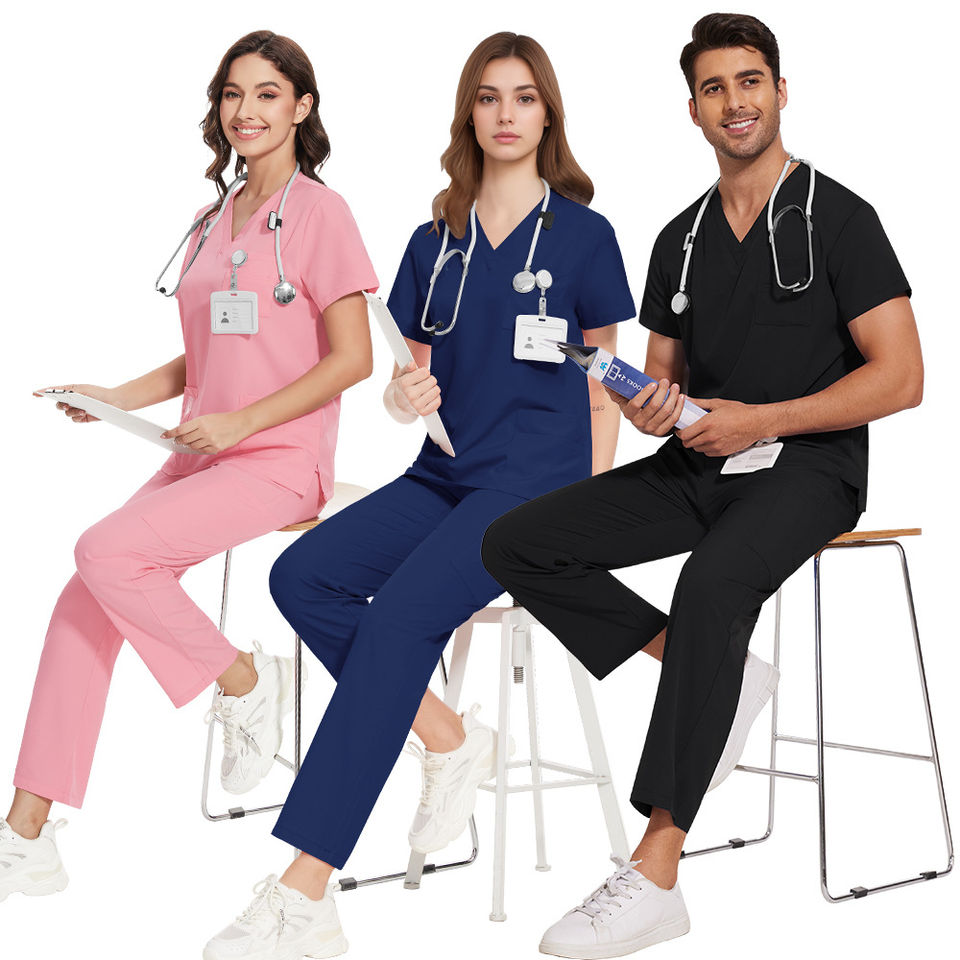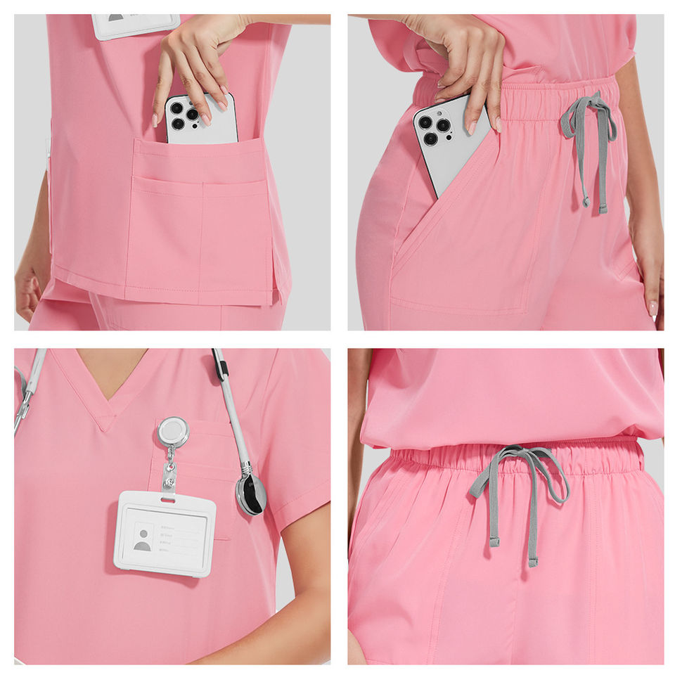Tenues chirurgicales légères à col en V, à séchage rapide, à manches courtes, pour blocs opératoires, spas médicaux, personnel infirmier, cliniques esthétiques - Uniformes d'hôpital