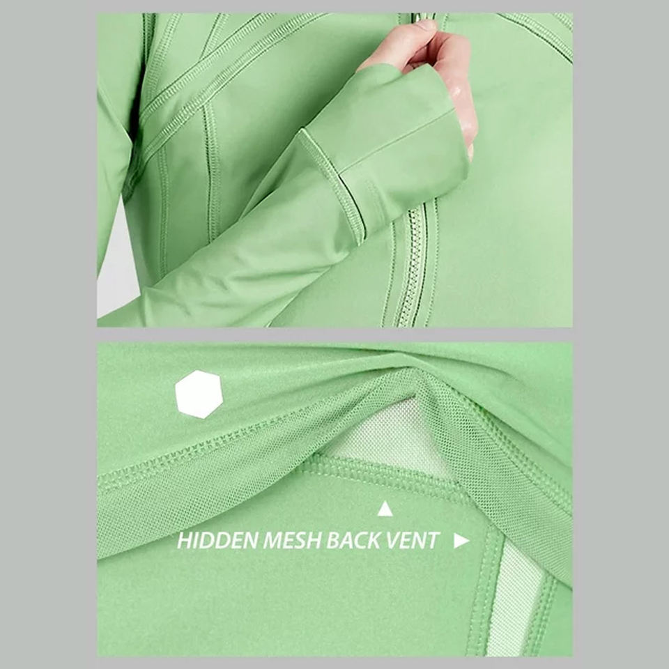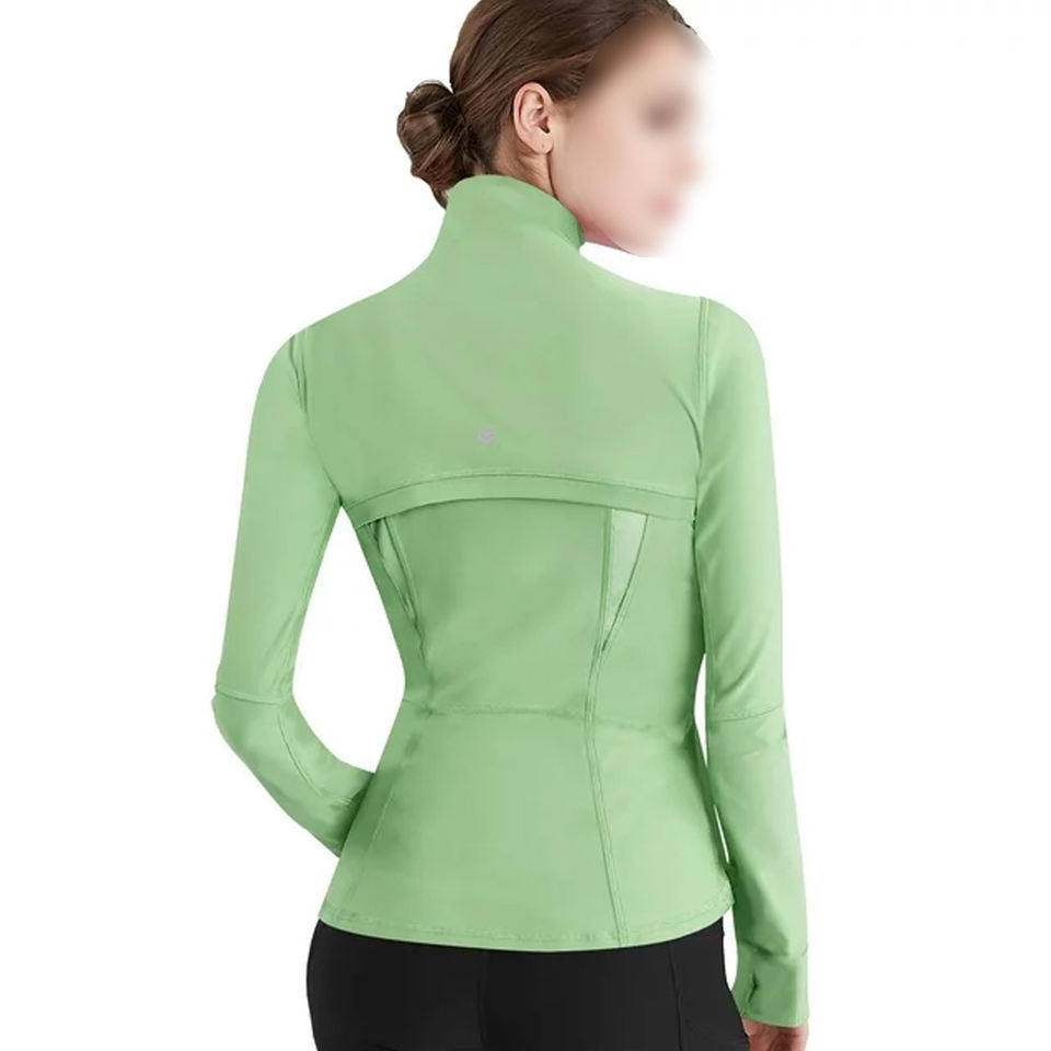 Léger imperméable coupe-vent coupe ajustée à manches longues col montant couleur unie Fitness veste respirant séchage rapide Yoga vestes