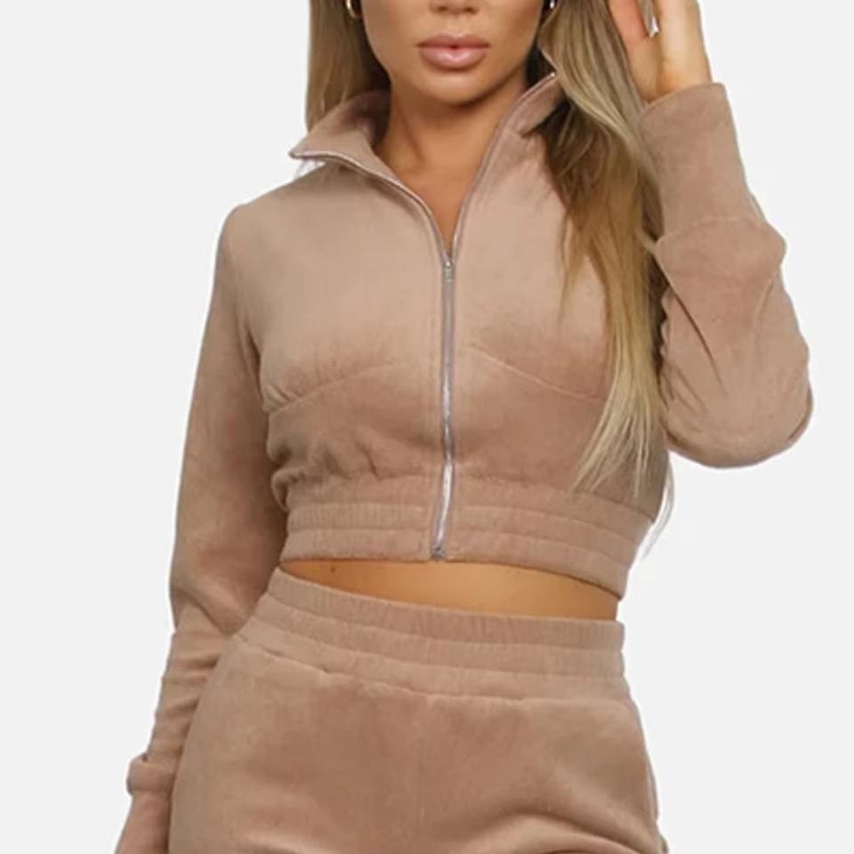 Survêtement léger à fermeture éclair avec doublure intérieure douce, haut court à fermeture éclair moderne, survêtement pour femme