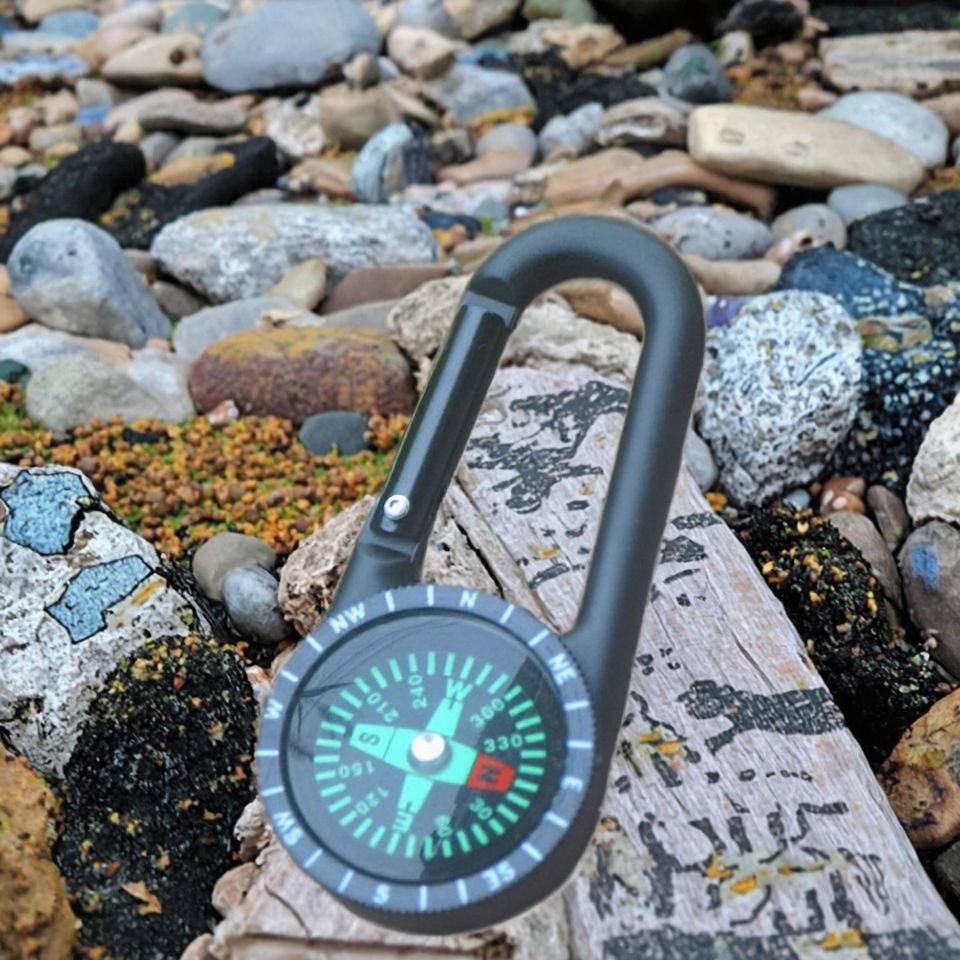 Porte-clés boussole en plastique ABS léger rempli de liquide, mousqueton d'alpinisme, avec échelle circulaire noire