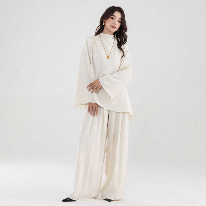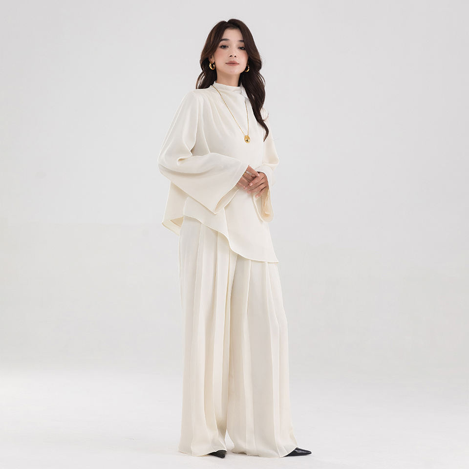 Lignes Modeste Chic femmes musulmanes deux pièces ensemble haut à manches évasées et jambe large Palazzo pantalon costume