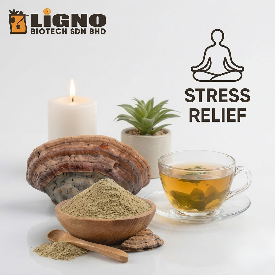 Poudre de champignon Phellinus Linteus LiGNO SH02 Ligno Biotech - Extrait à froid à spectre complet de qualité alimentaire pour le soulagement du stress