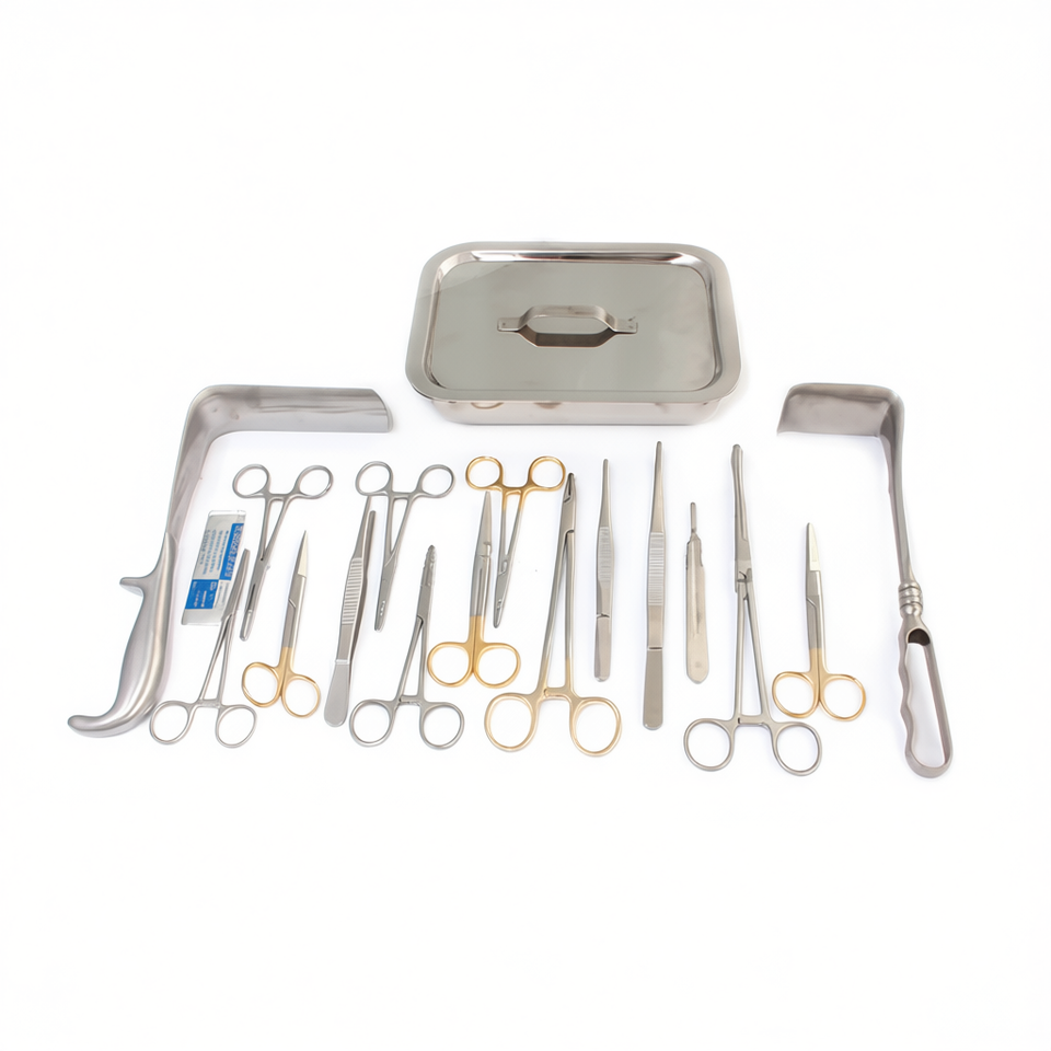 Kit d'instruments pour césarienne Likamed, qualité allemande, rétracteur manuel et forceps, emballé dans une boîte, en promotion