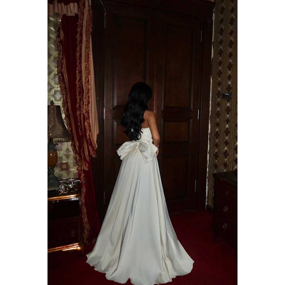 Lilou White Evening Dress for Ladies Luxury Ball Gown Style Bow Detail Empire Waistline Dropped Waistline Polyester Party XS XL