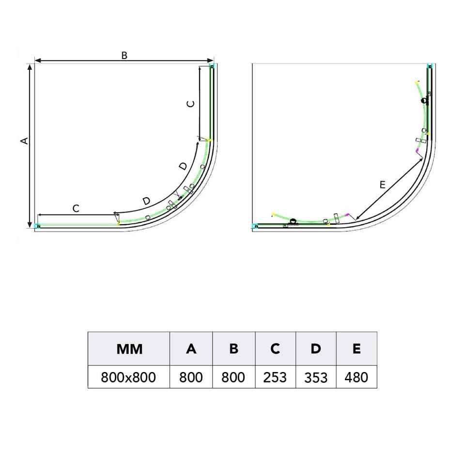 Cabine de douche arrondie Lima 80x80 cm, parois en verre semi-circulaires transparentes de 4 mm