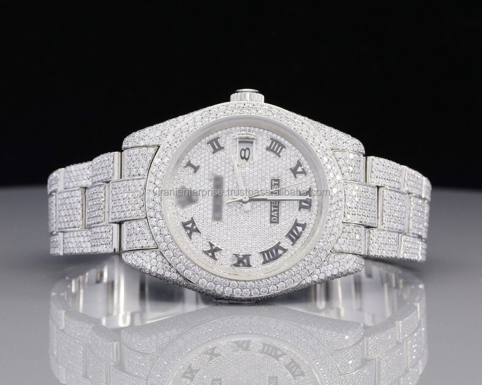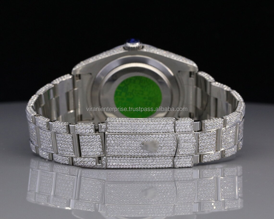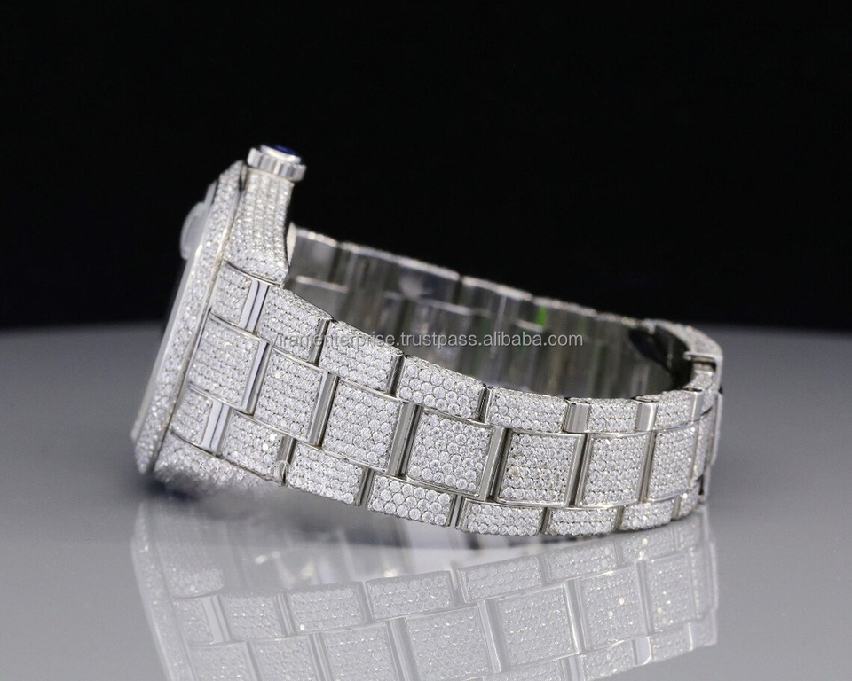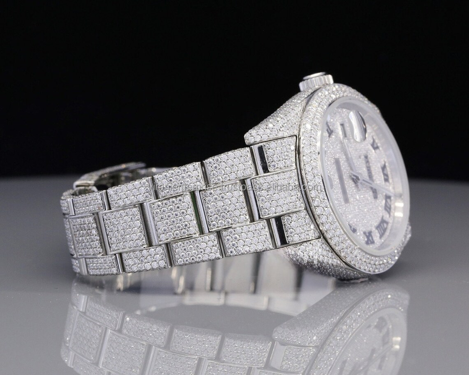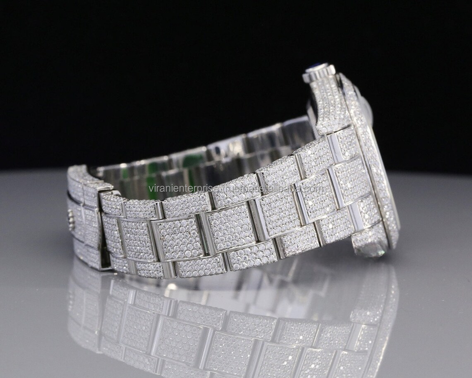 Montre analogique à quartz haut de gamme édition limitée, étanche, en acier inoxydable, avec verre serti de diamants Moissanite de clarté VVS