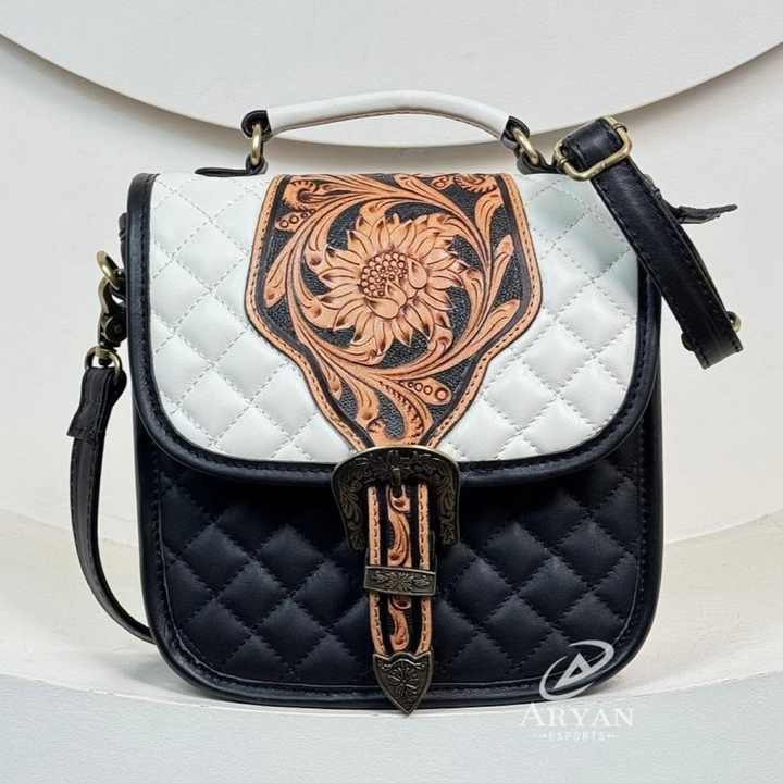 Product Name:Hand Tooled Quilted Western-style Ornate Buckle Handbag