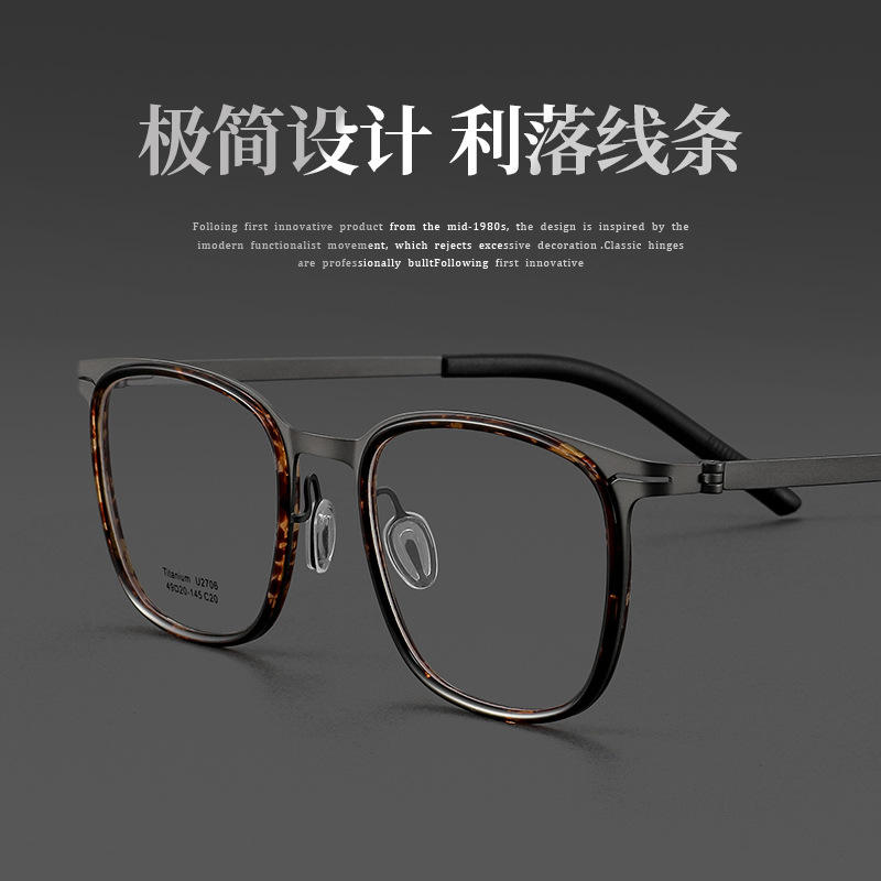 Montures de lunettes Linde Titanium 2706 rectangulaires pour hommes, écaille de tortue, monture optique Danyang, pont moyen, verres en plastique