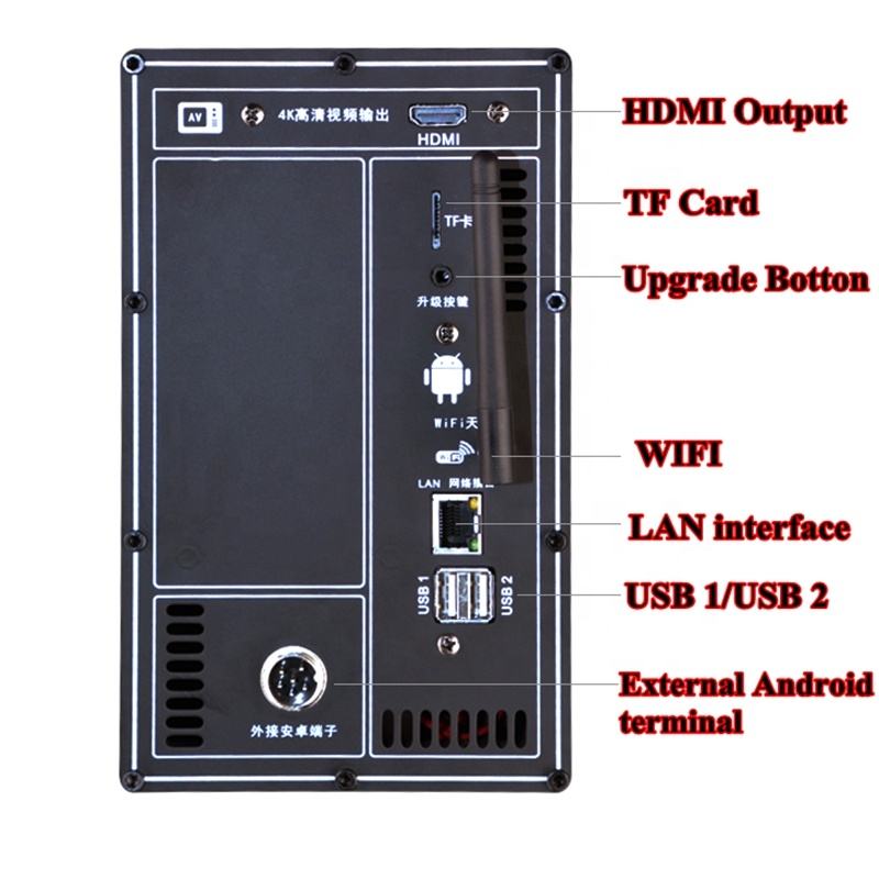 Entrée:USB1/USB2/AC/DC 12V/LAN/Upgradeoid terminal inp/externe Andrut