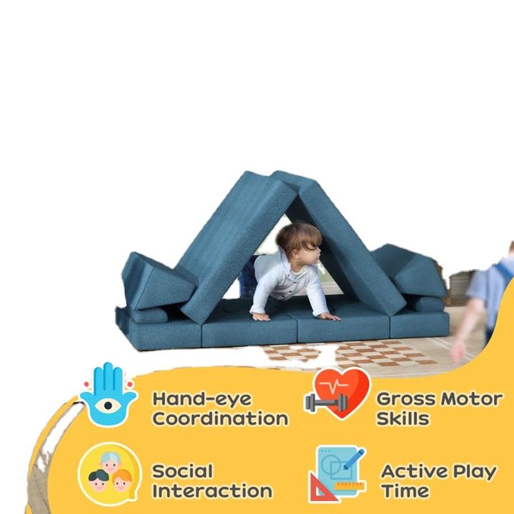 Lineage Corporation 12 pièces bleu modulaire enfants jouer canapé ensemble doux enfant sectionnel canapé pour salle de jeux chambre meubles