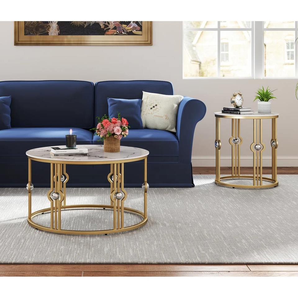 Table basse moderne écologique Lineage Corporation, design unique, métal et marbre, haute qualité, portable, pour le salon