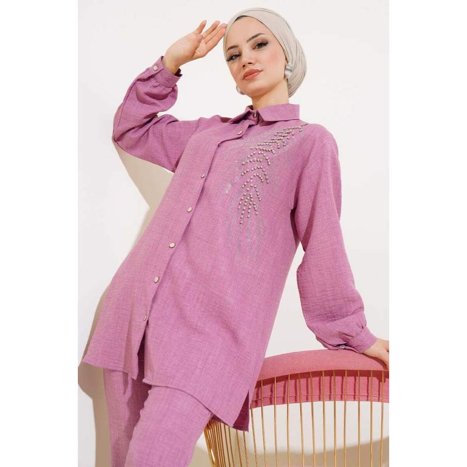 Ensemble de 2 pièces en lin avec perles sur le devant Dusty Rose