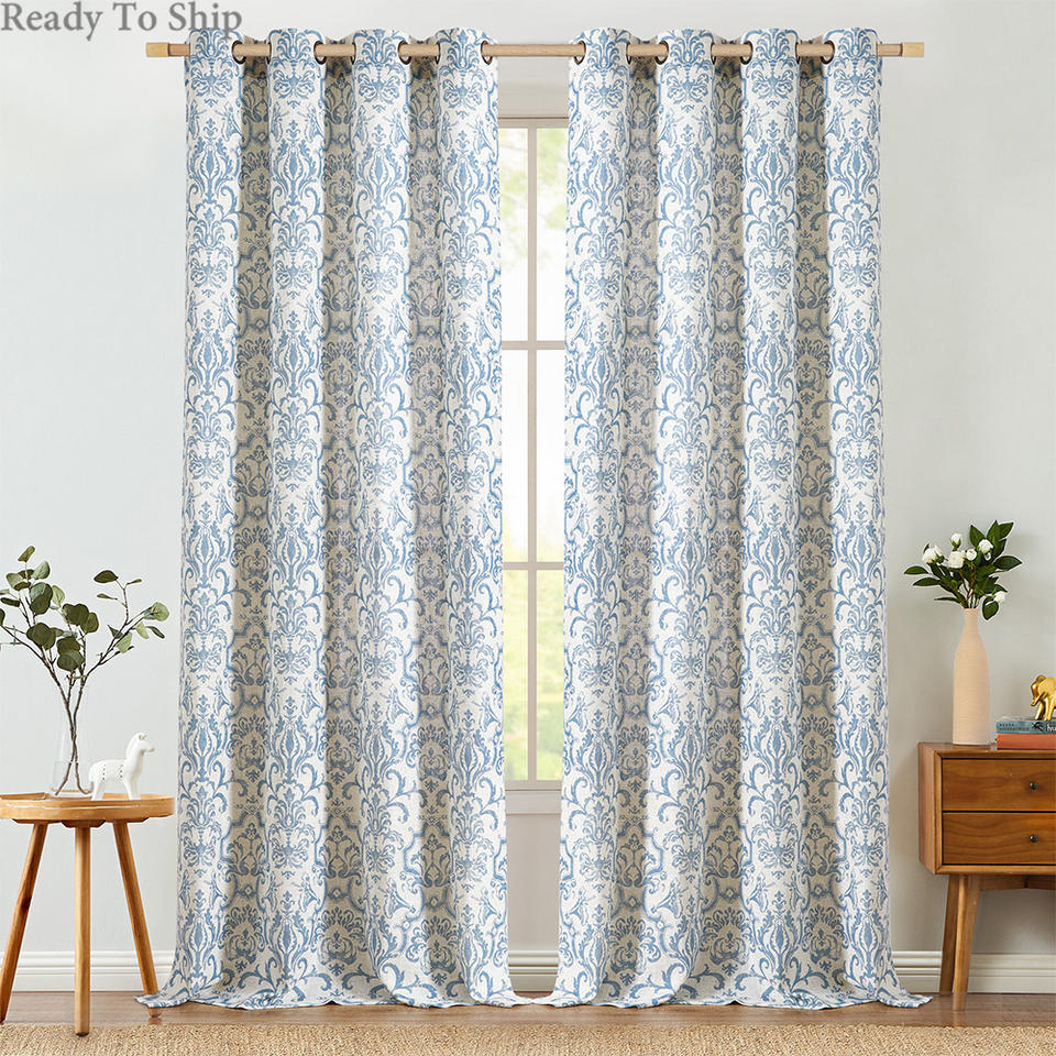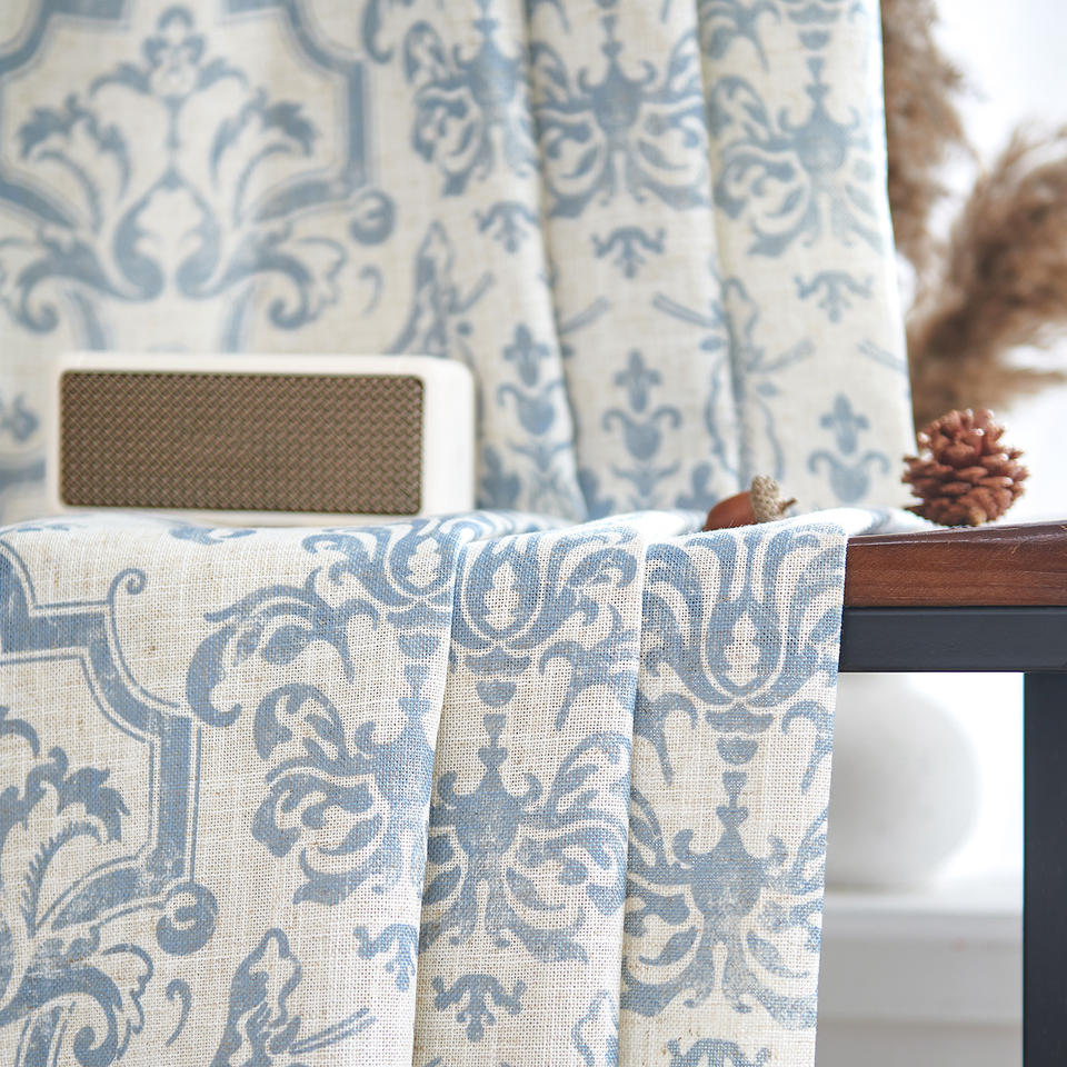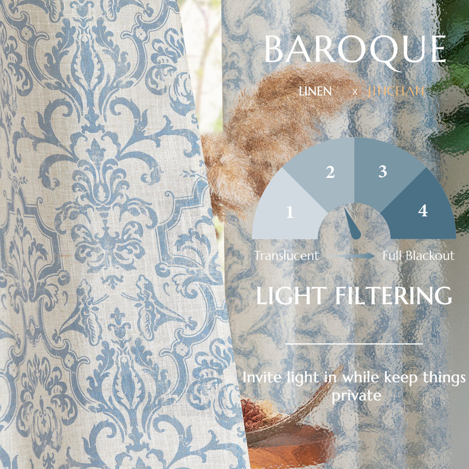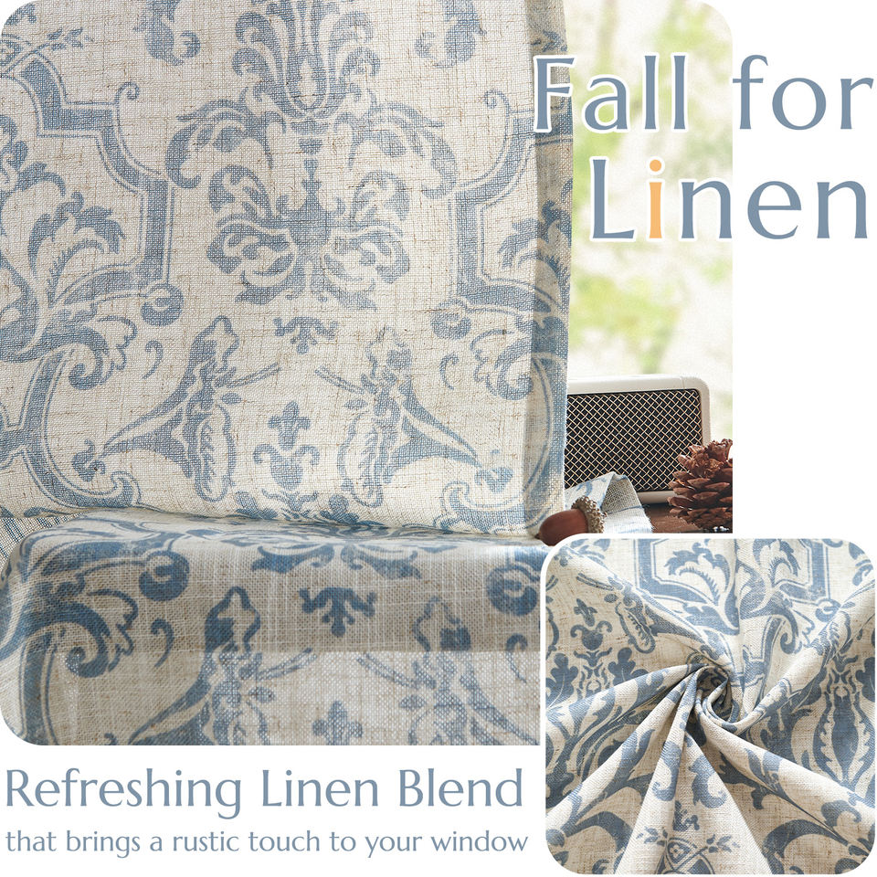 Rideaux filtrants la lumière en mélange de lin, 2 pièces, style baroque, brocart vintage