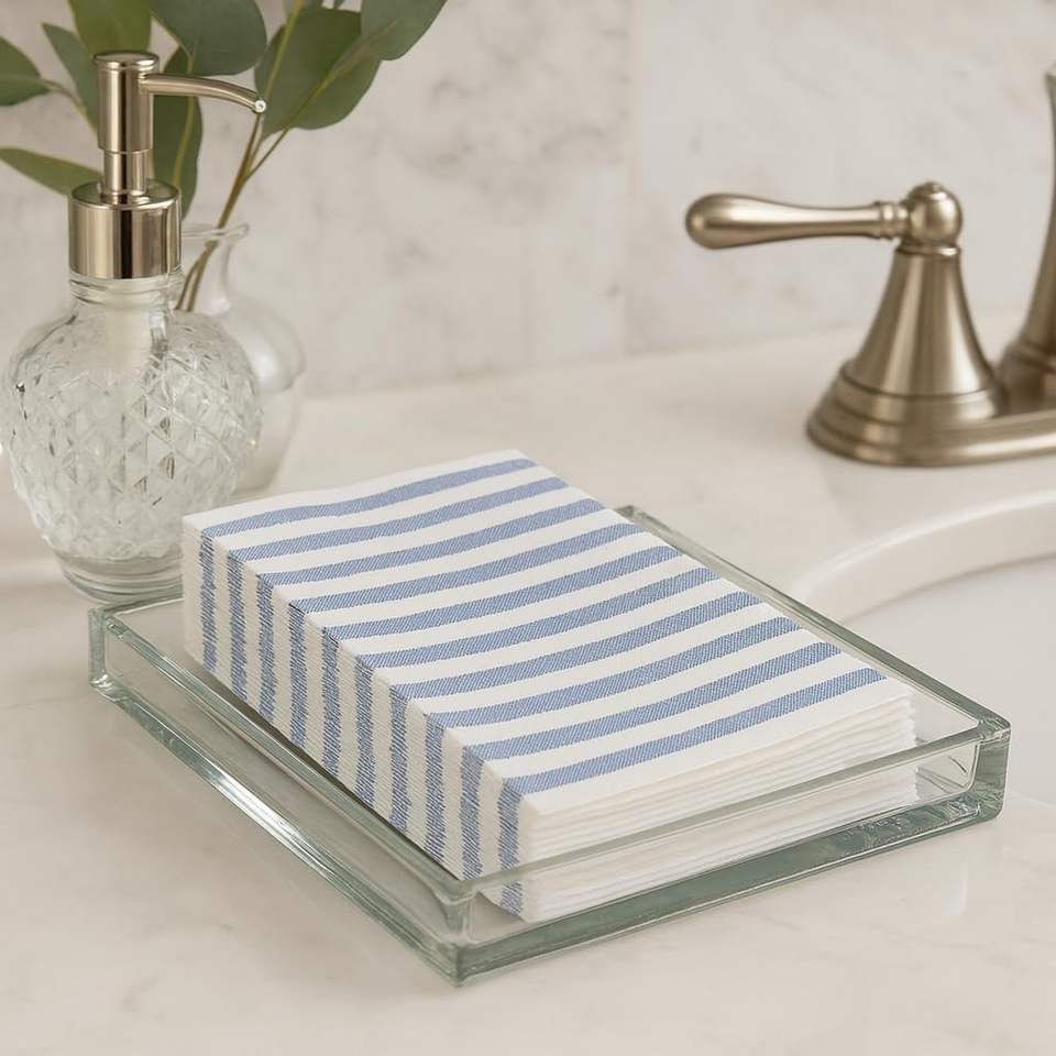 Serviettes de table rectangulaires de luxe imprimées, écologiques, douces et absorbantes, en Airlaid premium 1 pli, effet lin, à rayures