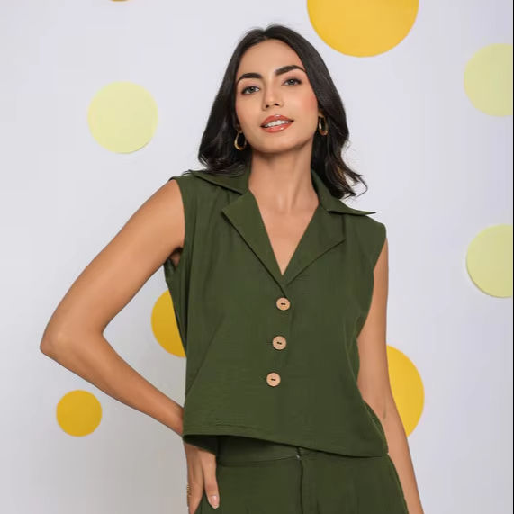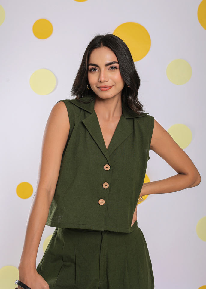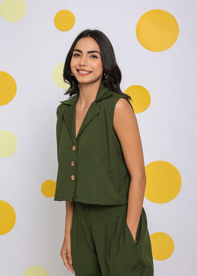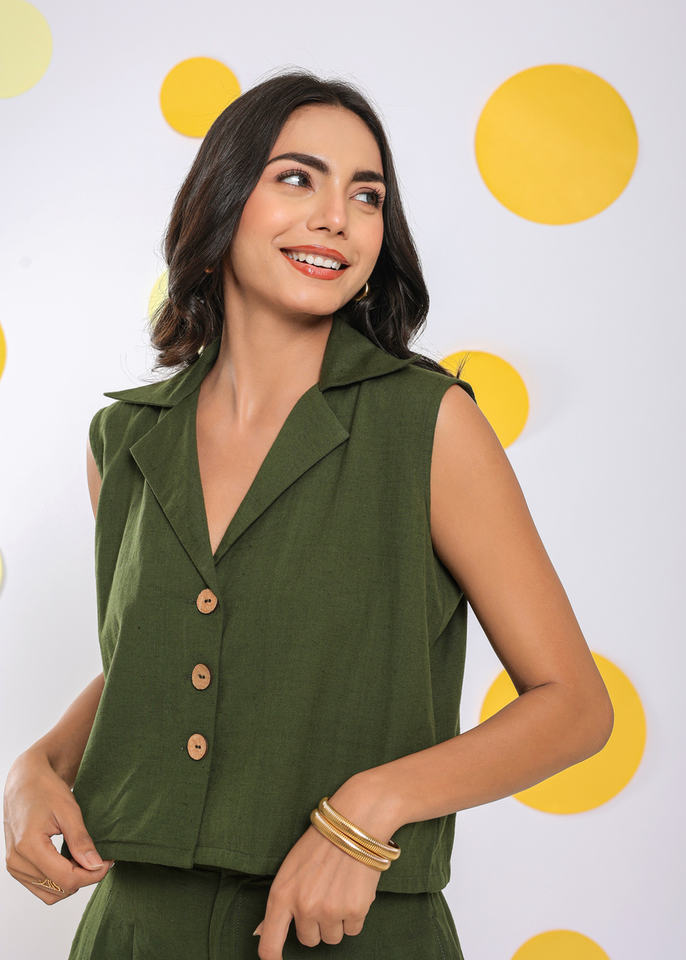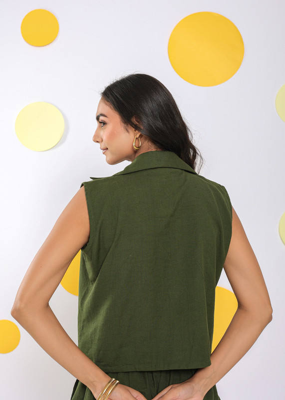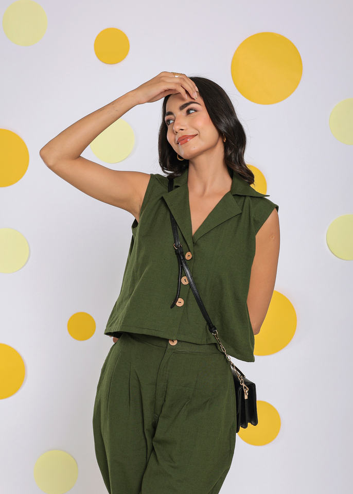 Product Name:Linen Olive Green Relaxed Top