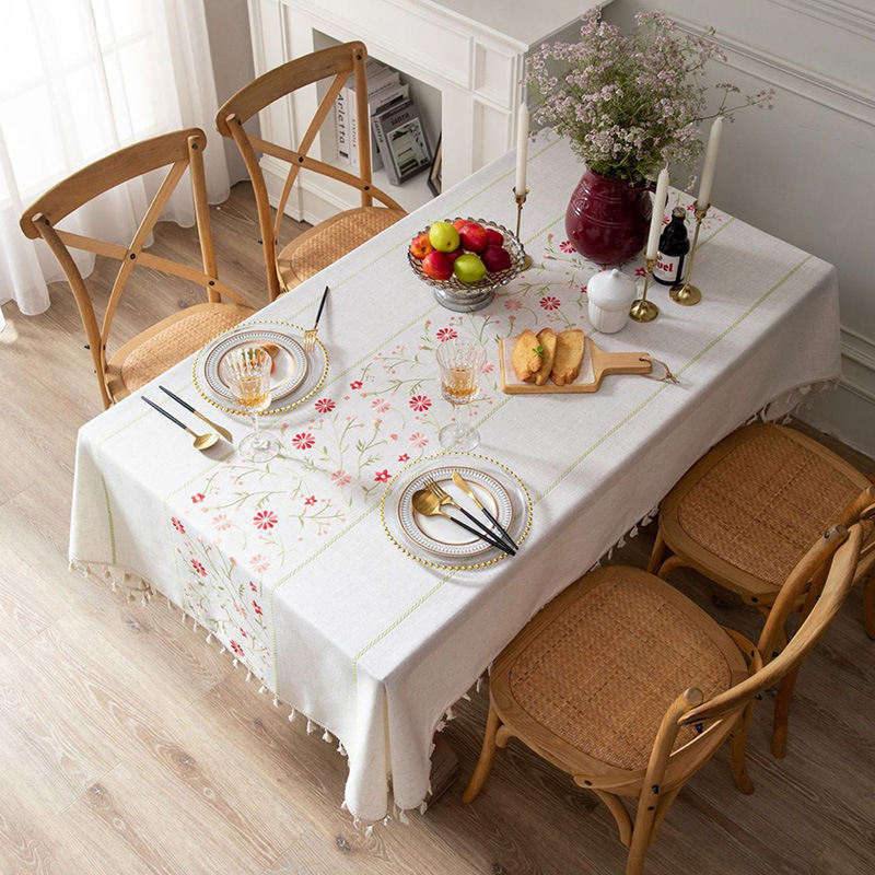 Nappe en lin personnalisée, carrée, pour salle à manger, banquet, imperméable, anti-taches, jetable, design moderne, broderie à pompon