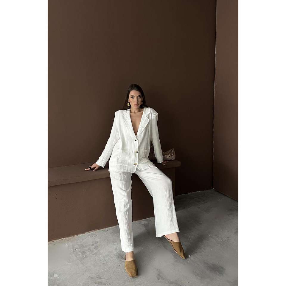 Ensemble de costume oversize en lin pour femme, blanc, respirant, pantalon large, blazer, 100% lin