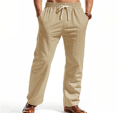 Pantalons d'été en lin, pantalons de plage, cordon de serrage, rayures verticales, pantalon décontracté respirant à tube droit, pantalon pour homme