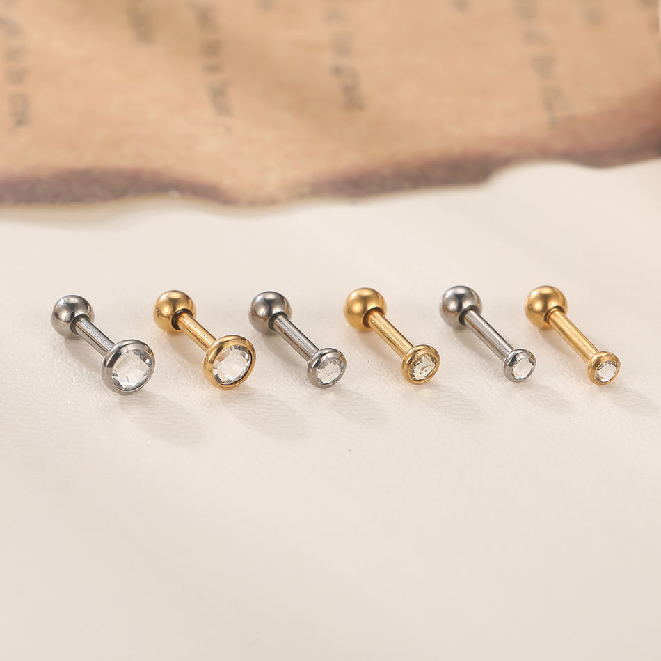 Lingchee ASTM F136 Piercings en titane pour cartilage, labret et nez, avec zircon serti, bijoux de corps