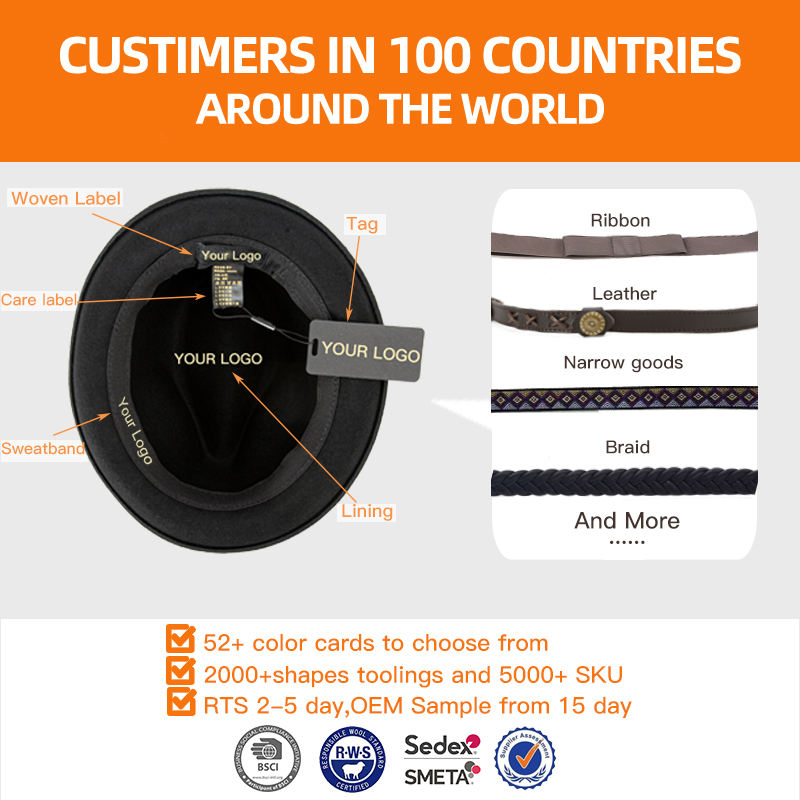 Type de chapeau:Chapeau de feutre ferme de laine