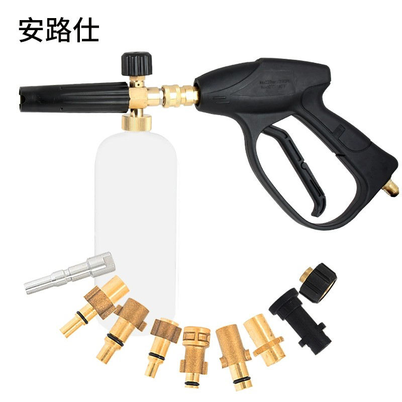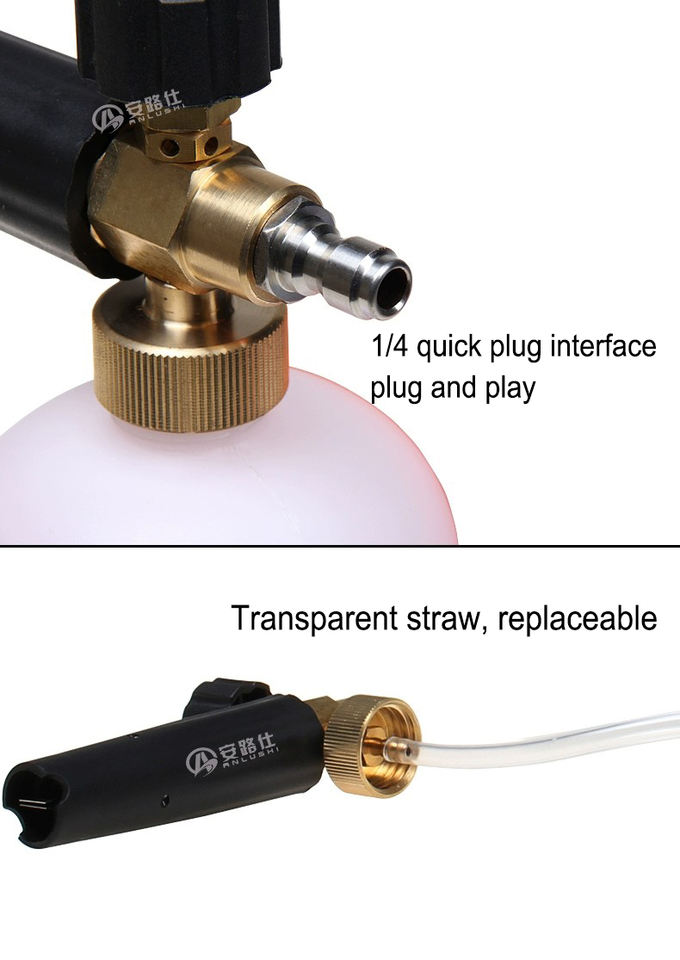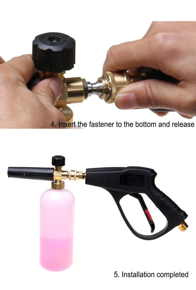 Lance à mousse commerciale Lingzhen LZ-HD 1L noire pour detailing automobile, réglable, connexion rapide 1/4 pouce, canon à neige 100-250 bars