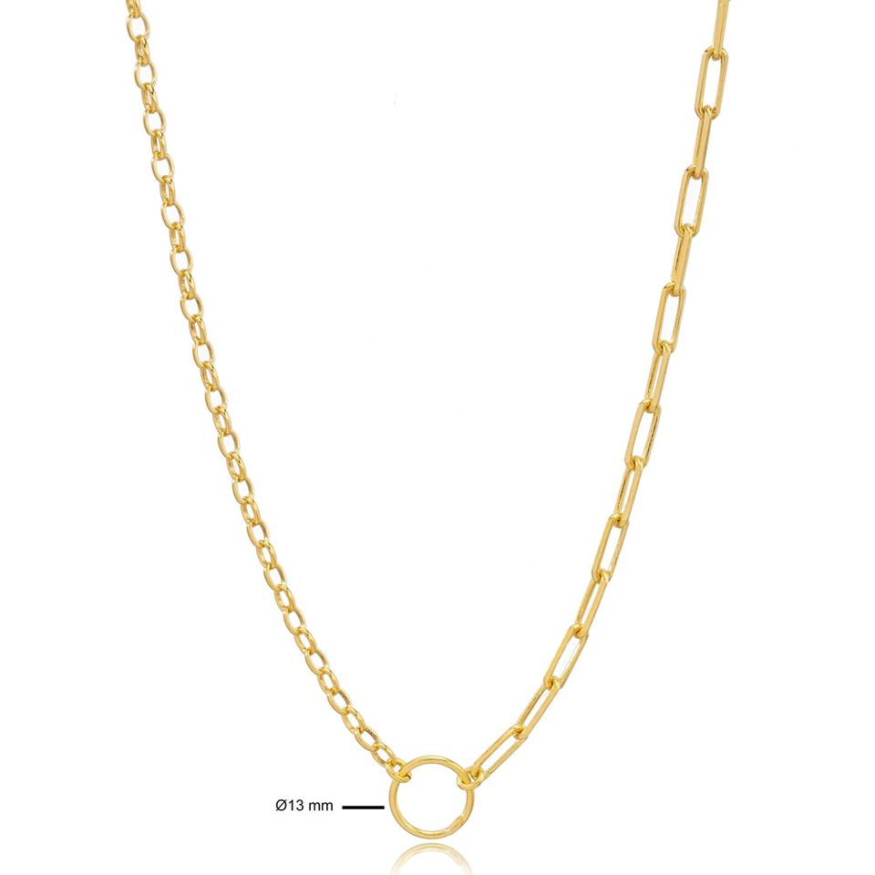 Lien et chaîne de câble ovale collier pendentif à breloque ronde bijoux en argent sterling 925 turc