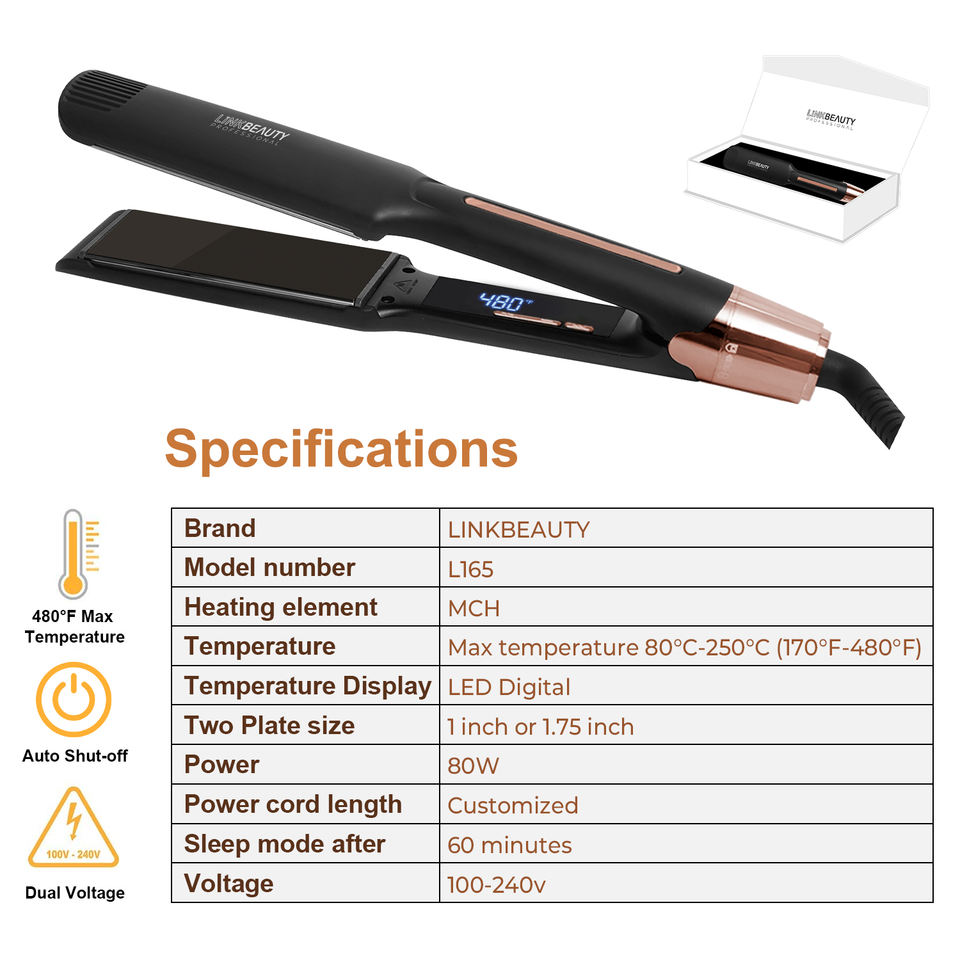 Lisseur de cheveux numérique LinkBeauty, interface conviviale, plaques de 1,75 pouce, facile à utiliser, en stock