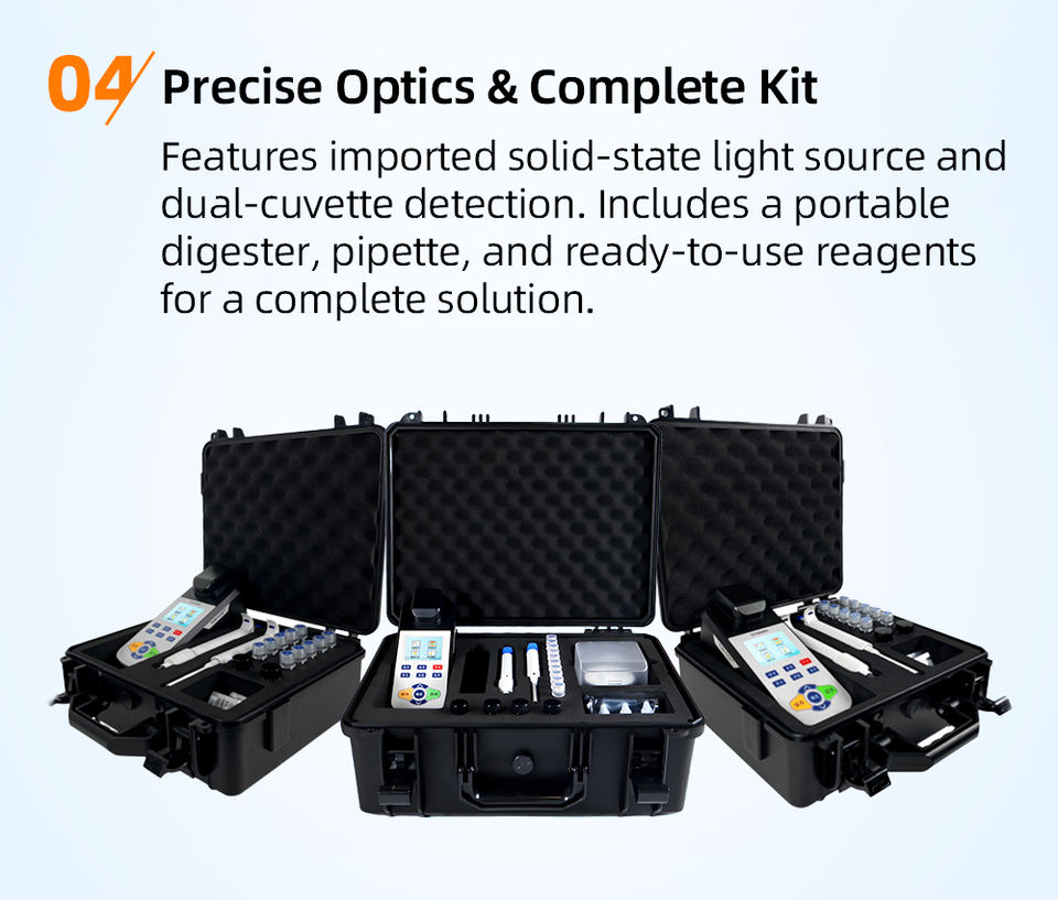 Méthode de colorimétrie:Système de colorimétrie bicolore (prend en charge les cuvettes de 16 mm et 25 mm)