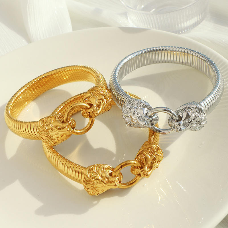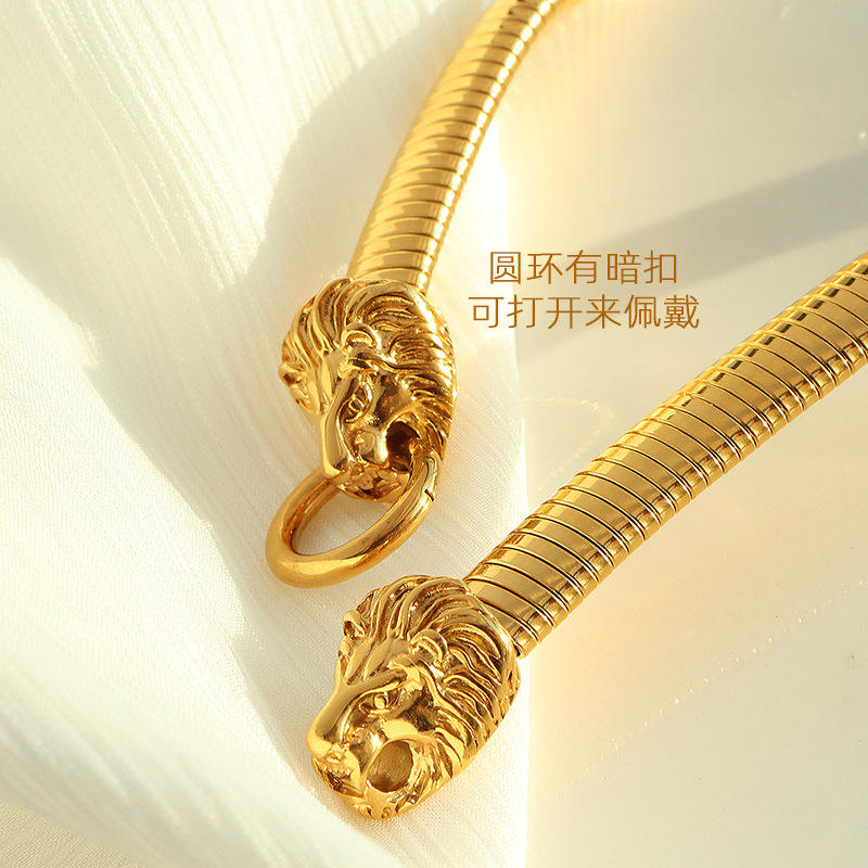SZ18 Steel Lion Head Bangle; SZ18 Gold Lion Head Bangle