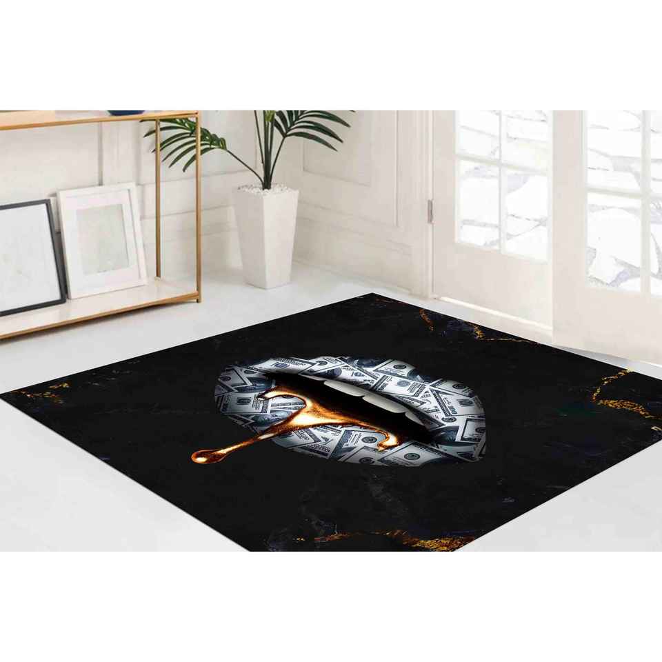 Tapis imprimé Dollar et Lèvres : Motif Dollar moderne, design sensuel, tapis doux non tissé