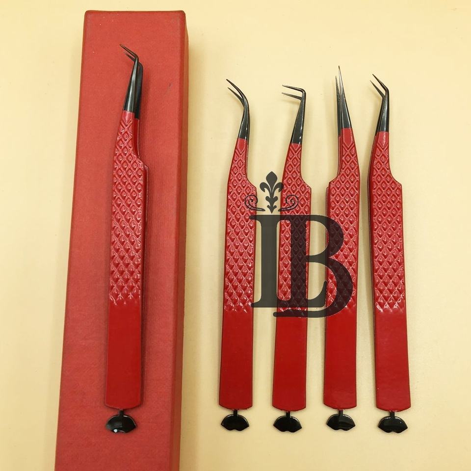 Pince à épiler pour extensions de cils inférieurs, style lèvre, avec boîte de rangement, rouge, droite, courbée, pointe fine, prise en main confortable, pour cils de vison