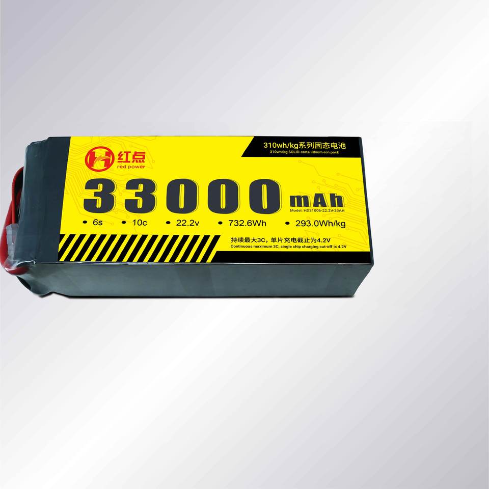 Batterie Lipo 6s HD UAV Power 33Ah6S 22.2V 33000mAh 310wh/kg Batterie lithium-ion à l'état solide pour VTOL à aile fixe