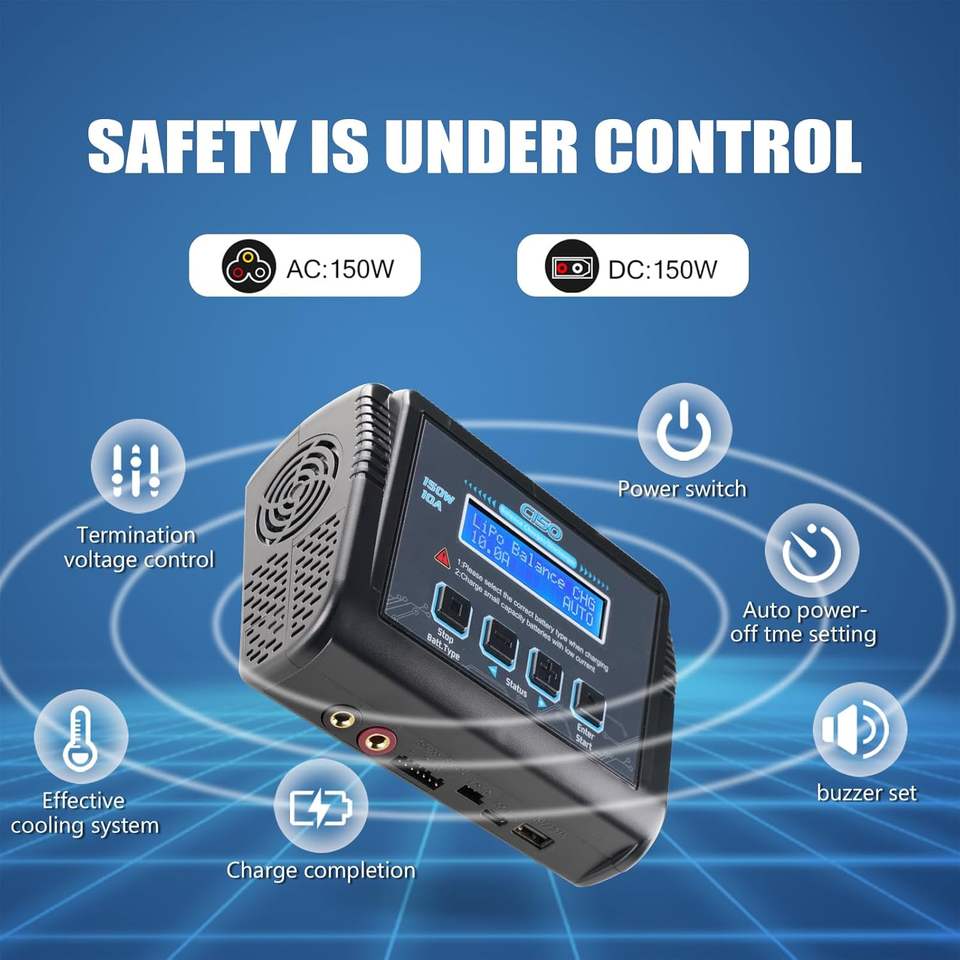 Chargeur de batterie LiPo 1S-6S pour voiture RC, 150W 10A, charge rapide et intelligente avec équilibrage pour LiPo