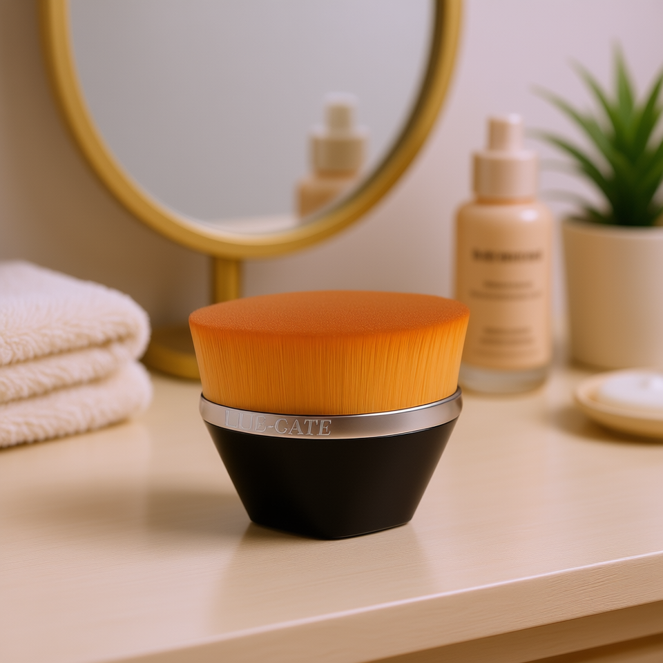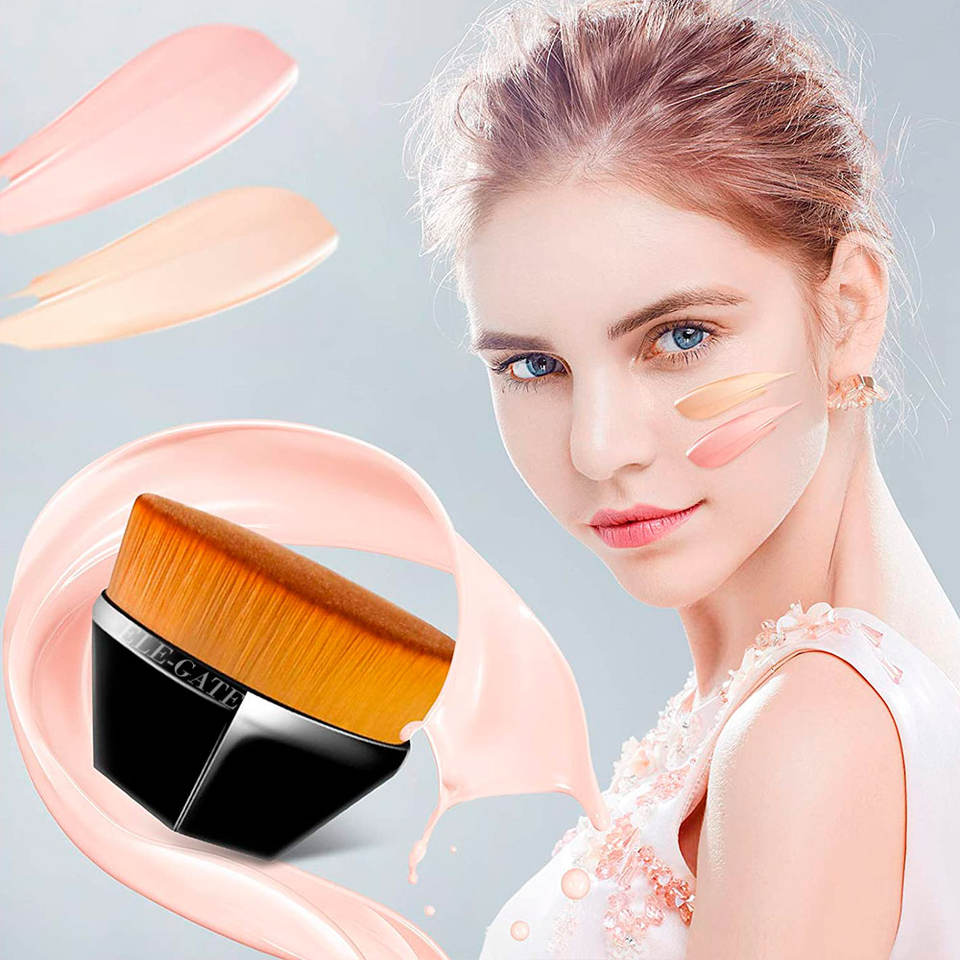 Pinceau de maquillage pour le visage ELEGATE, poils synthétiques plats, pour fond de teint liquide, manche en plastique noir avec virole en aluminium épaissie