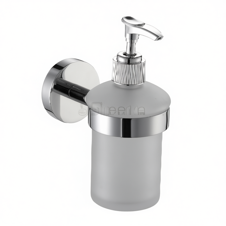 Distributeur de savon liquide mural en laiton chromé, largeur 8 cm, hauteur 21,5 cm, longueur 14 cm